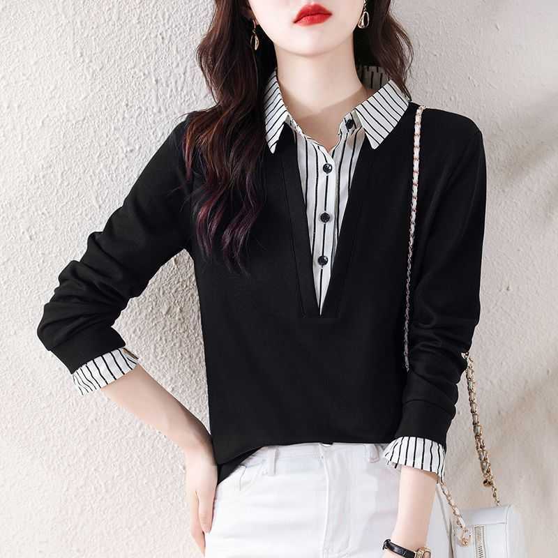 【值哭了!穿上氣質超群!限時特惠買一送一!】假兩件條紋時尚減齡拼接衛衣