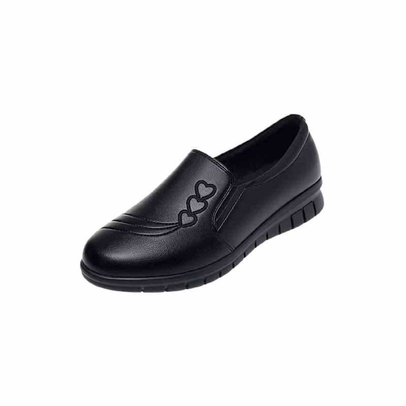 【柔軟耐折!透氣舒適!廠家直銷全台免運!】愛心黑色軟皮軟底媽媽鞋