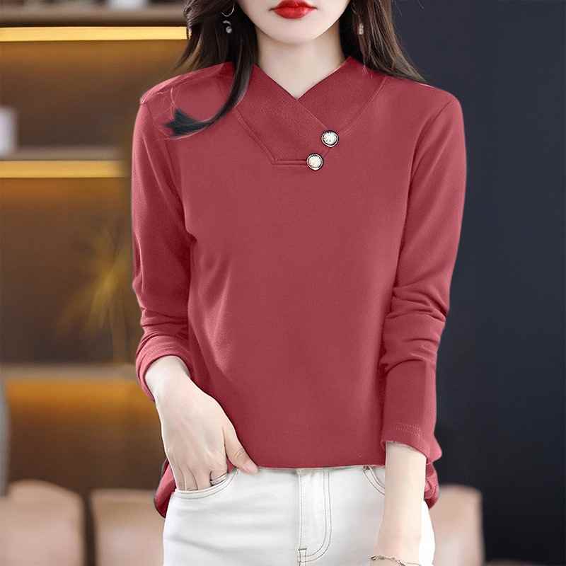 【新款限時特惠買一送一!每件均價僅499元!】交叉領口紐扣裝飾新款媽媽德絨打底衫