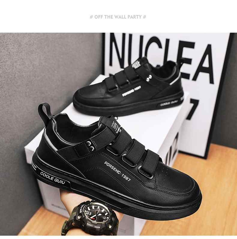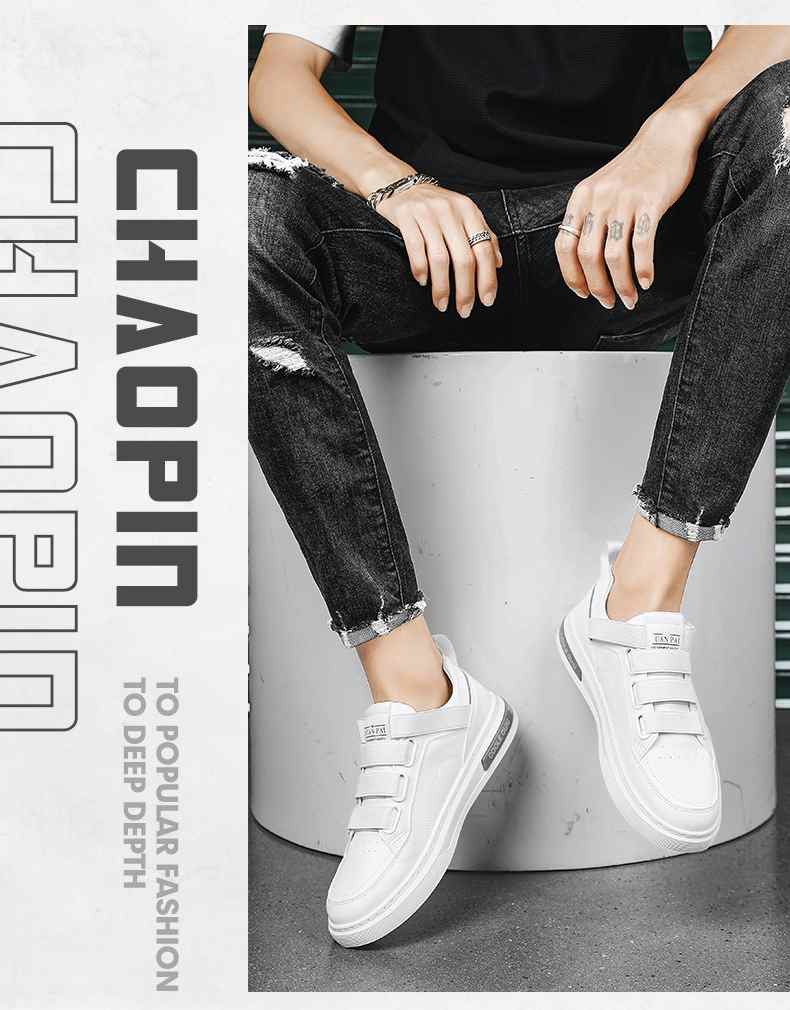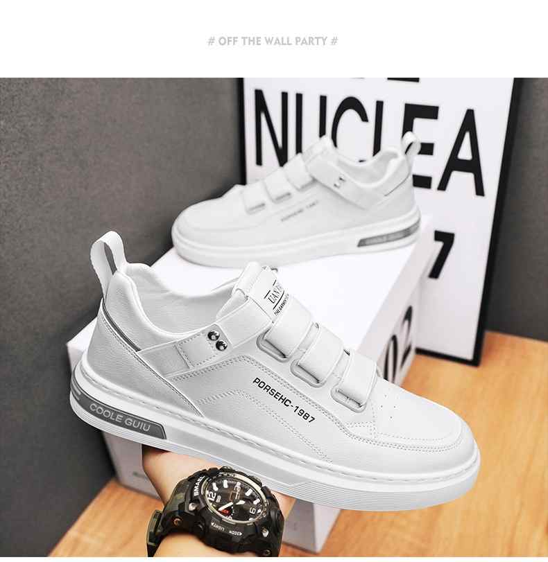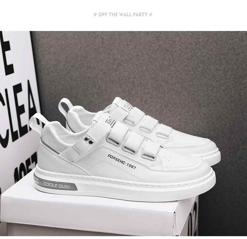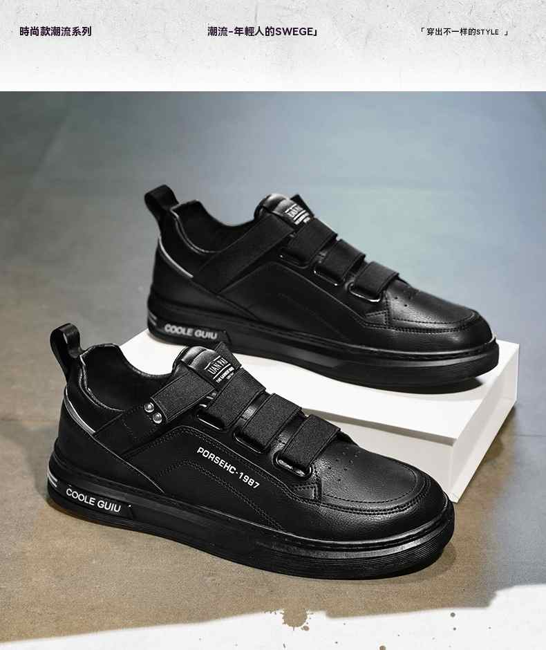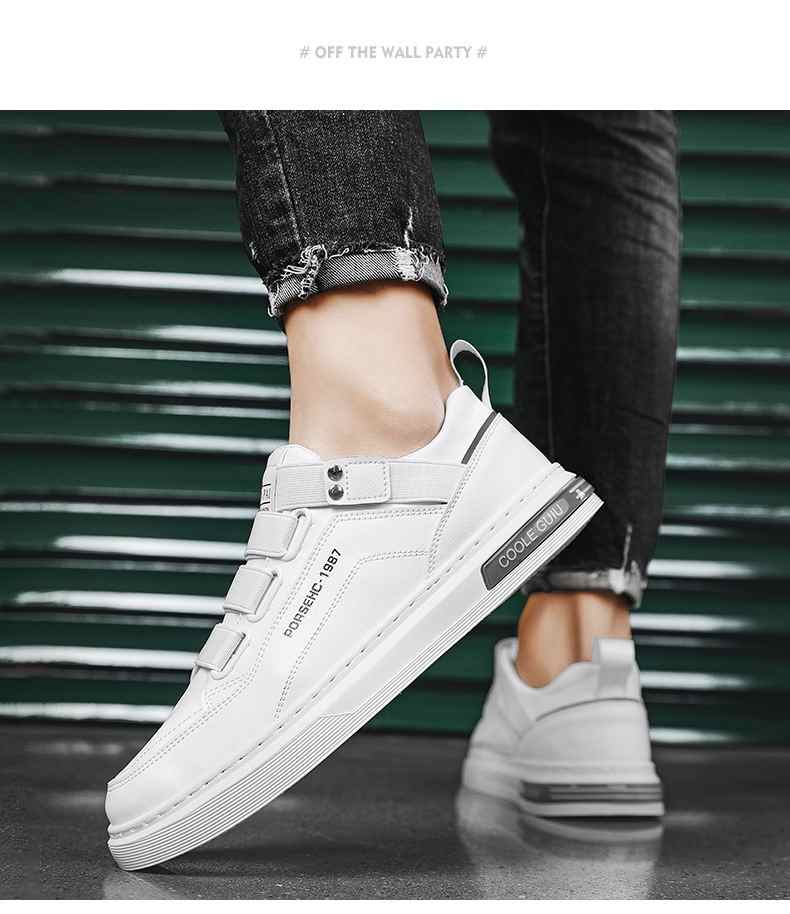 四季可穿無鞋帶皮革休閒男鞋【白色】+【黑色】各一雙(到手2雙,每雙均價549元!)