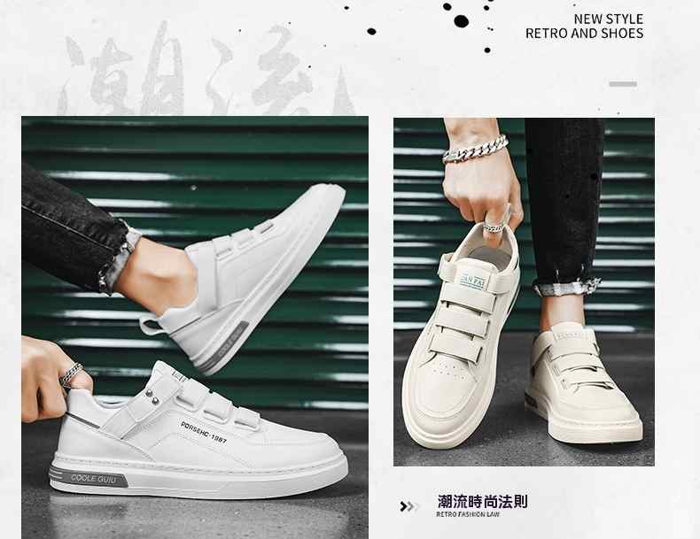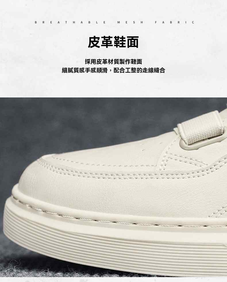 四季可穿無鞋帶皮革休閒男鞋【白色】+【米色】各一雙(到手2雙,每雙均價549元!)
