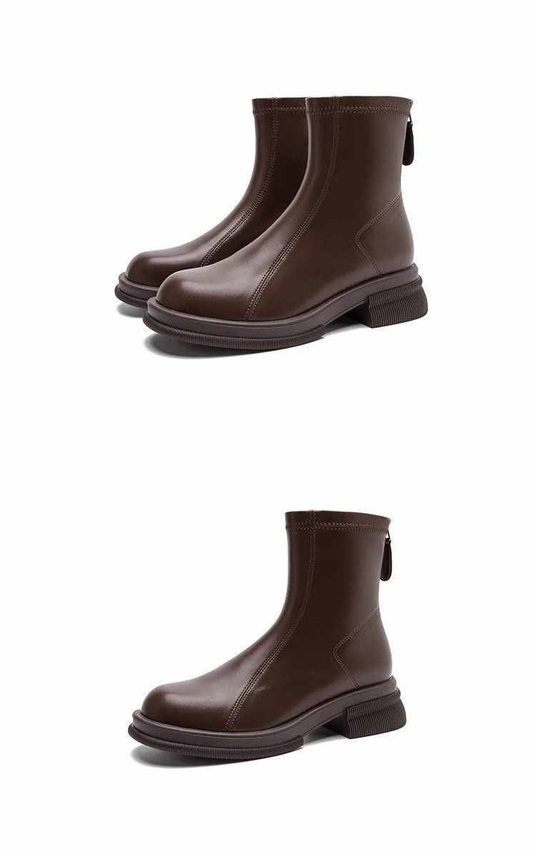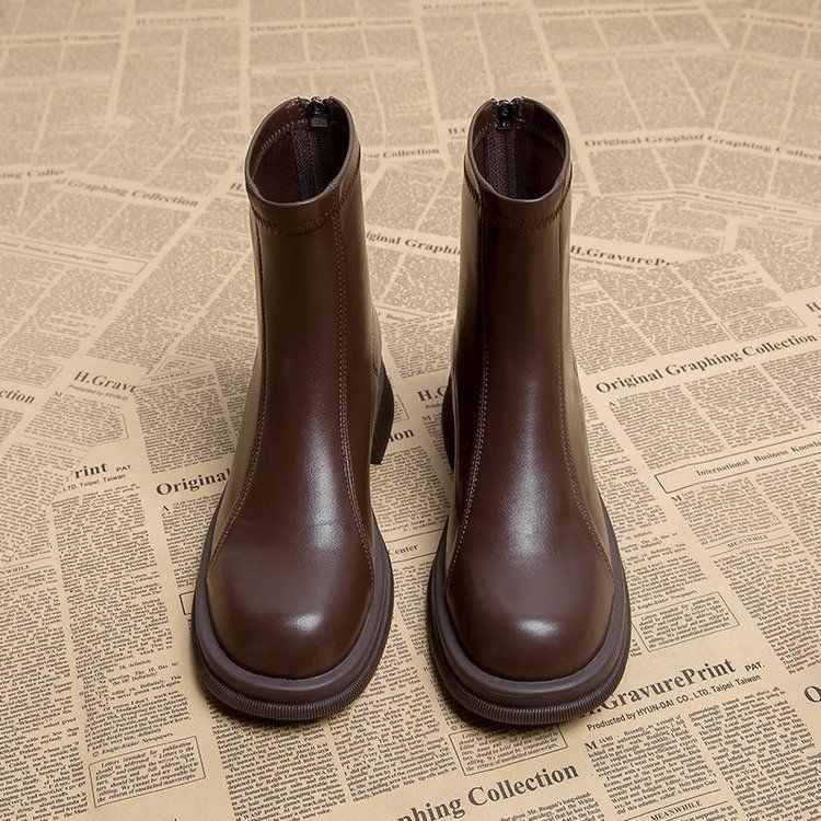 保暖舒適耐磨秋冬軟皮女靴【棕色】一雙