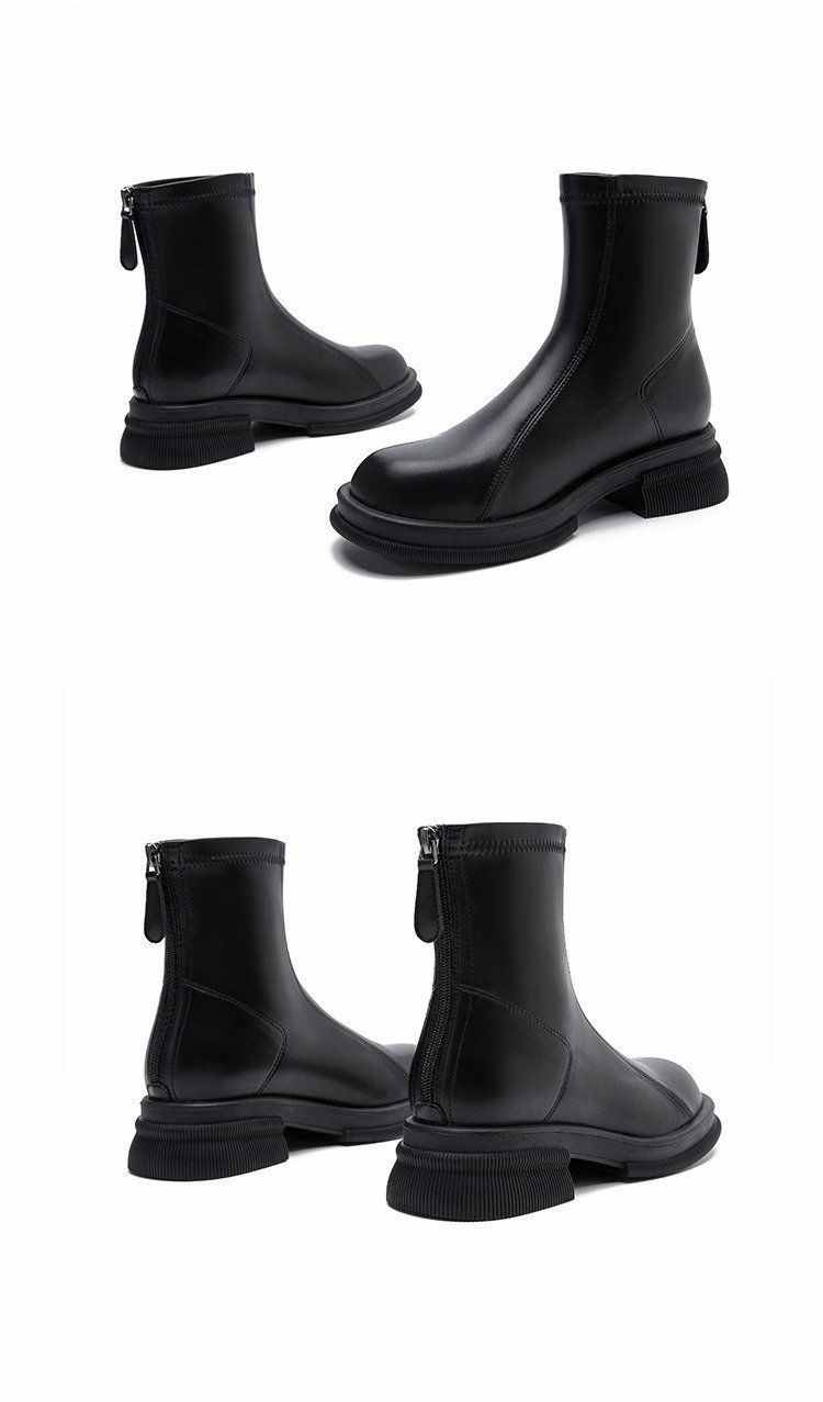 保暖舒適耐磨秋冬軟皮女靴【黑色】一雙