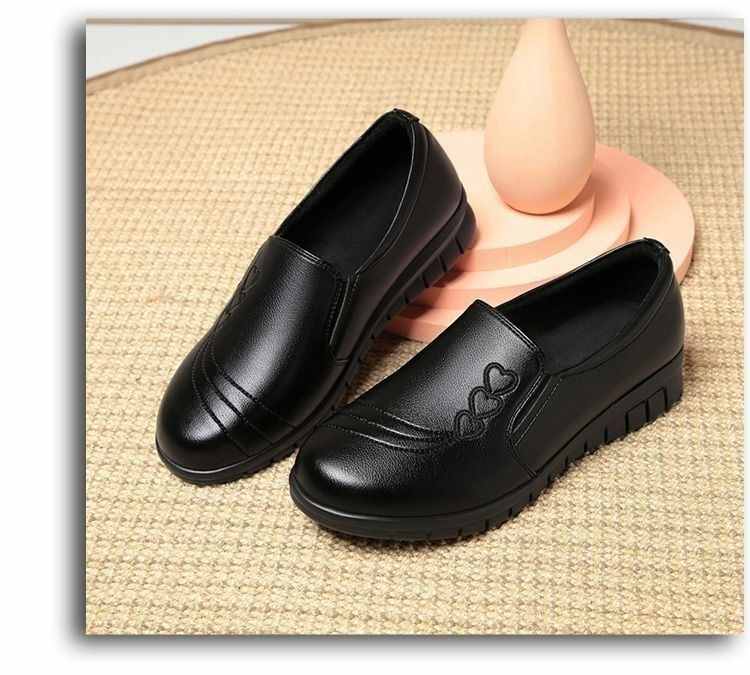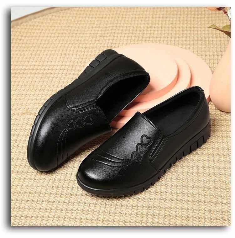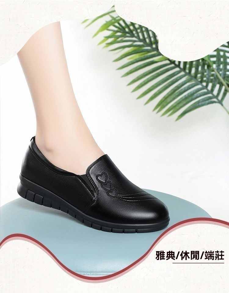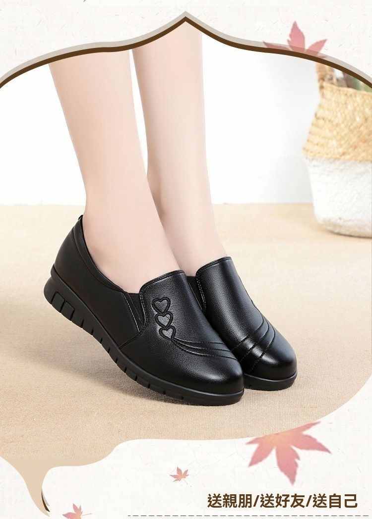 愛心黑色軟皮軟底媽媽鞋【加400秒殺2雙!】2雙(到手2雙!每雙均價649元!)