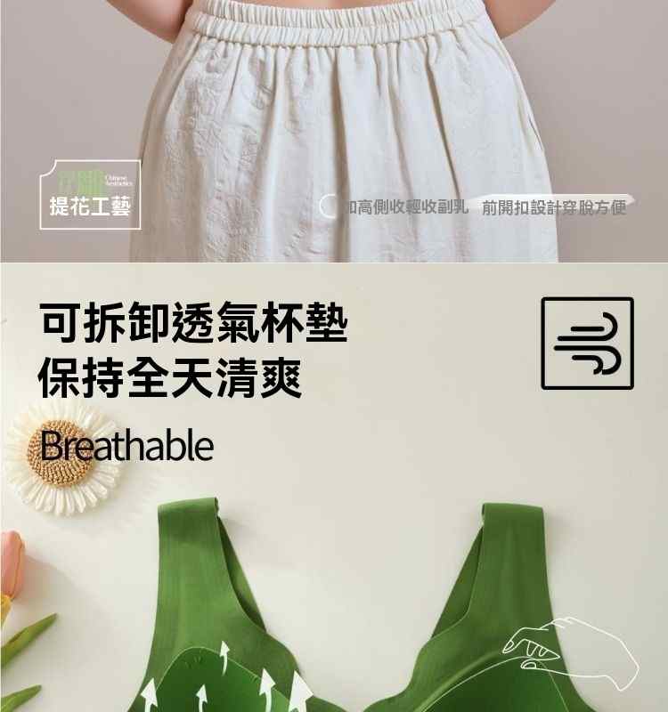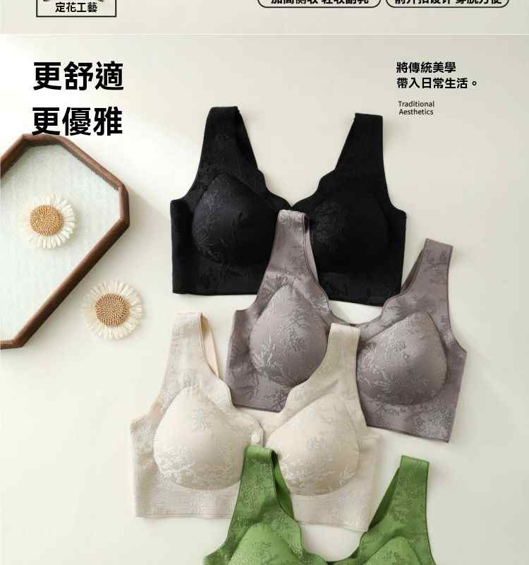 浮雕提花前開扣調整型內衣【綠】+【紫】+【膚】+【黑】各一件(到手4件!每件均價245元!)