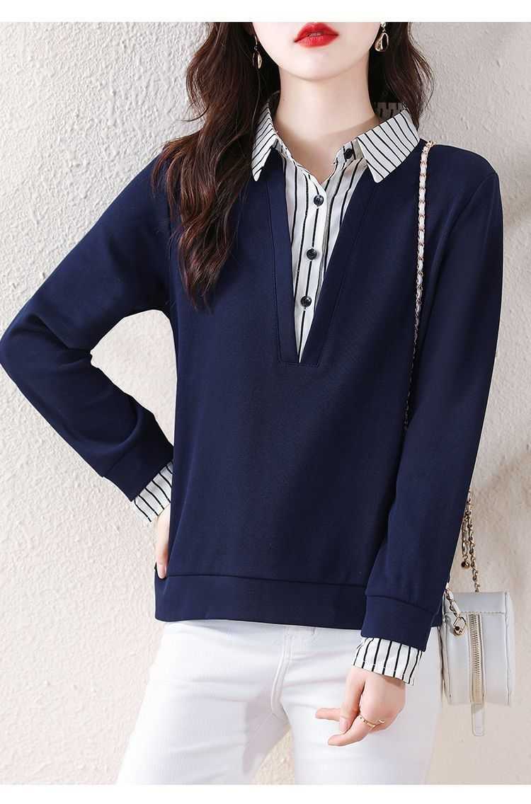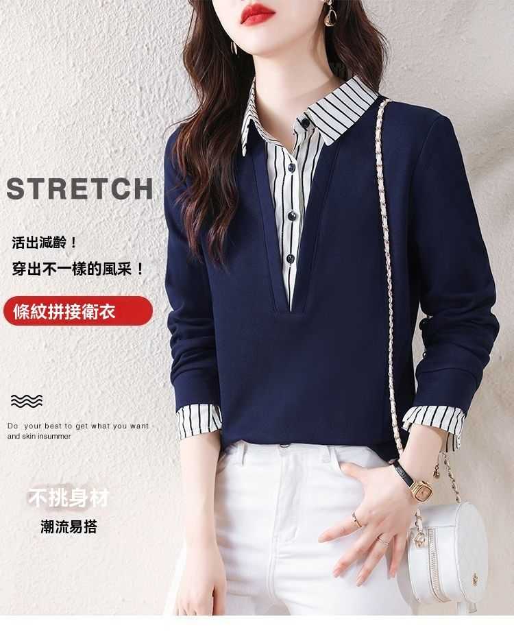 假兩件條紋時尚減齡拼接衛衣【買一送一】藏青色+黑色各一件(到手2件,每件均價649元!)