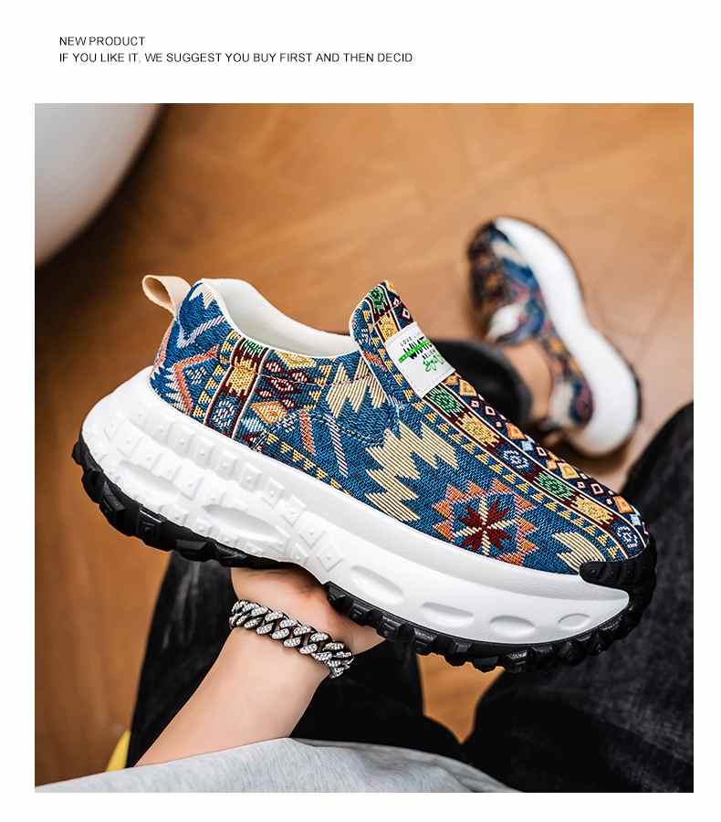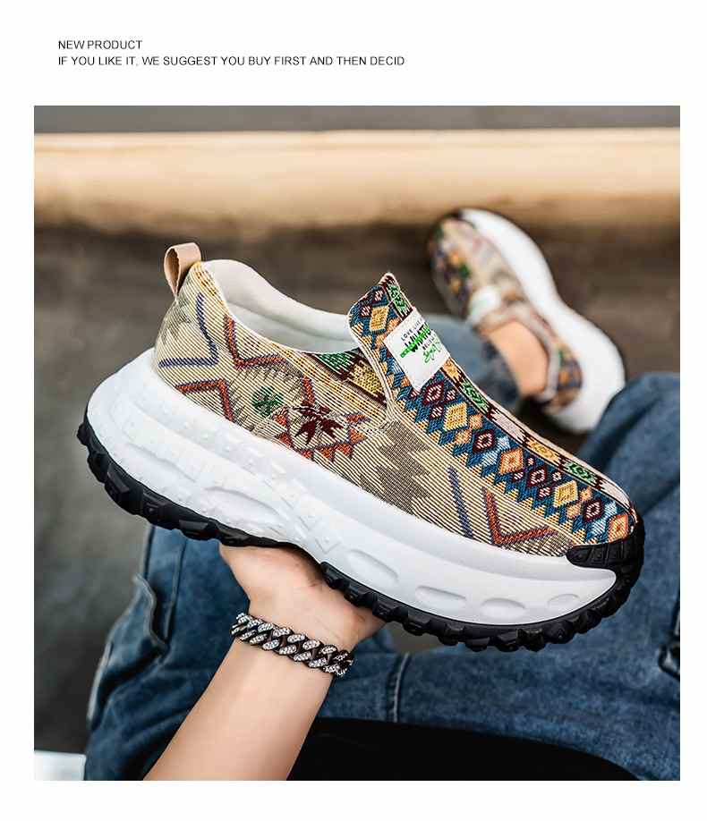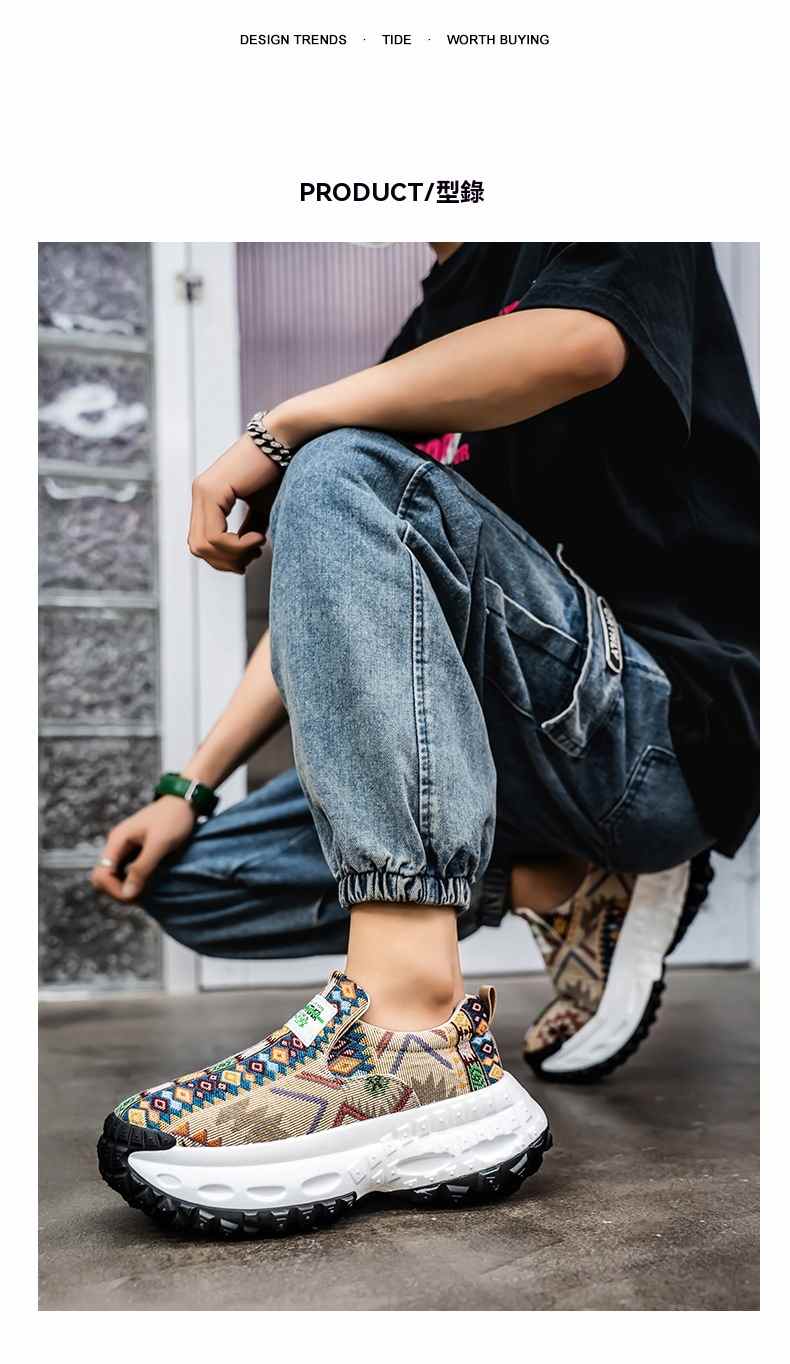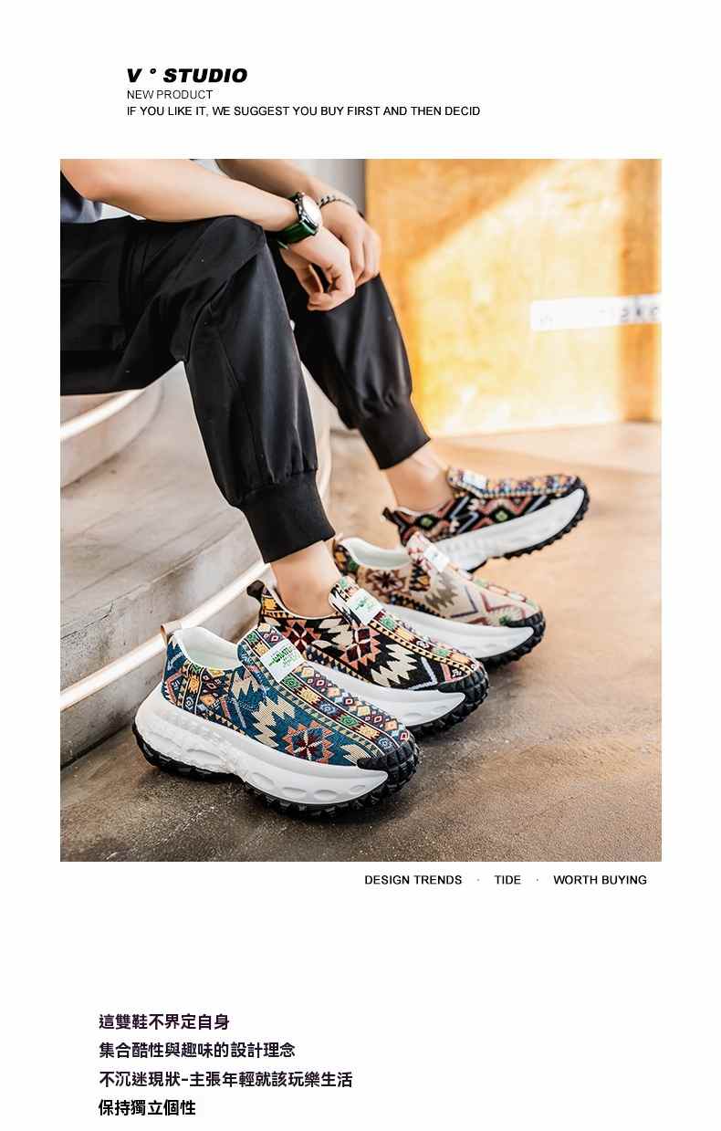 2025個性刺繡增高厚底一腳蹬休閒鞋【卡其色】+【藍色】各一雙(到手2雙,每雙均價549元!)