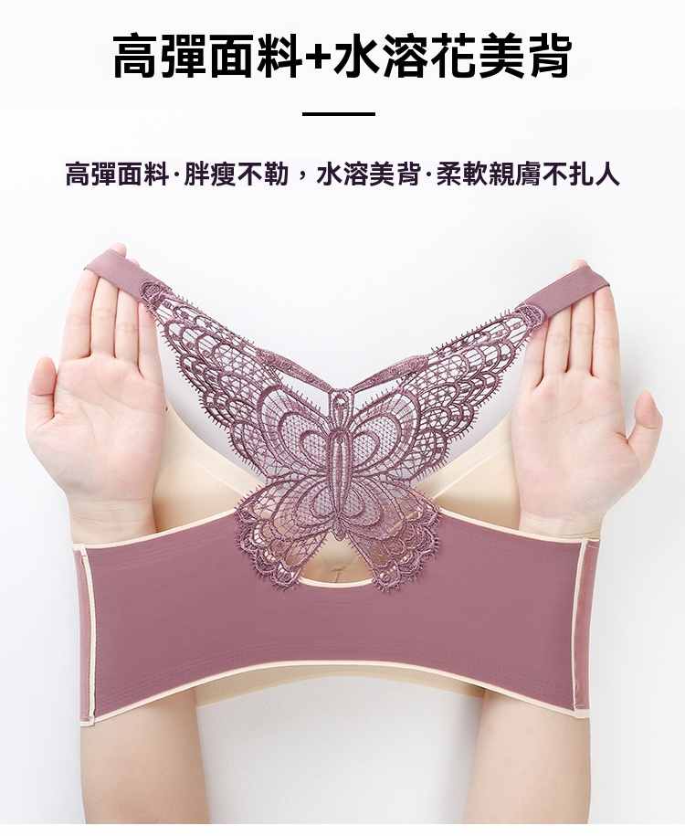 春夏蝴蝶美背聚攏大碼女士內衣【買一送二】【紫色】+【黑色】+【膚色】各一件(到手3件,每件均價333元!)