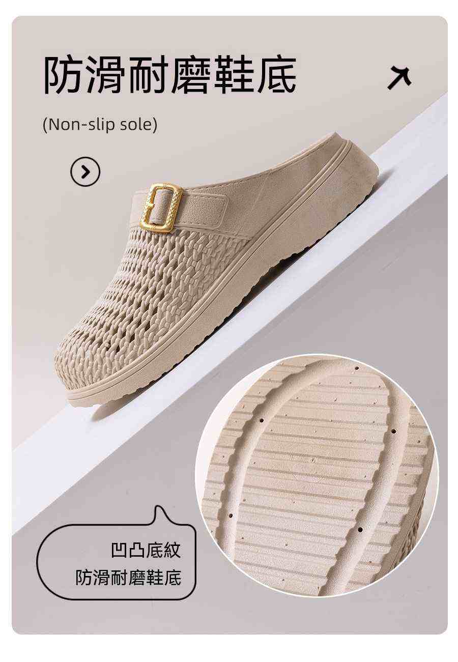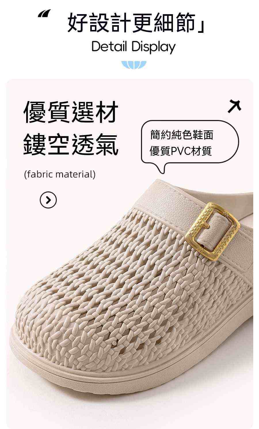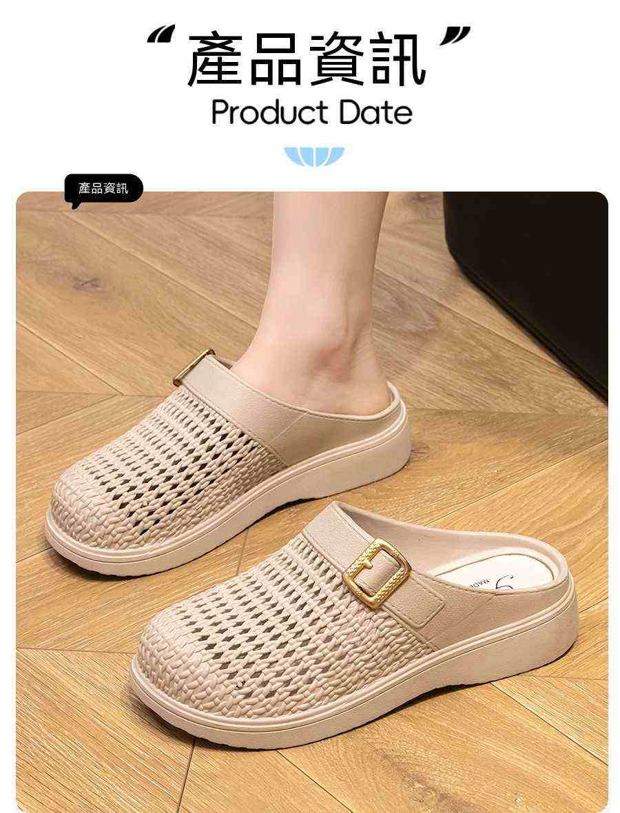 圓頭編織拼接包頭透氣厚底拖鞋【買一送一】【黑色】+【米白色】各一雙(到手兩雙,每雙均價400元!)