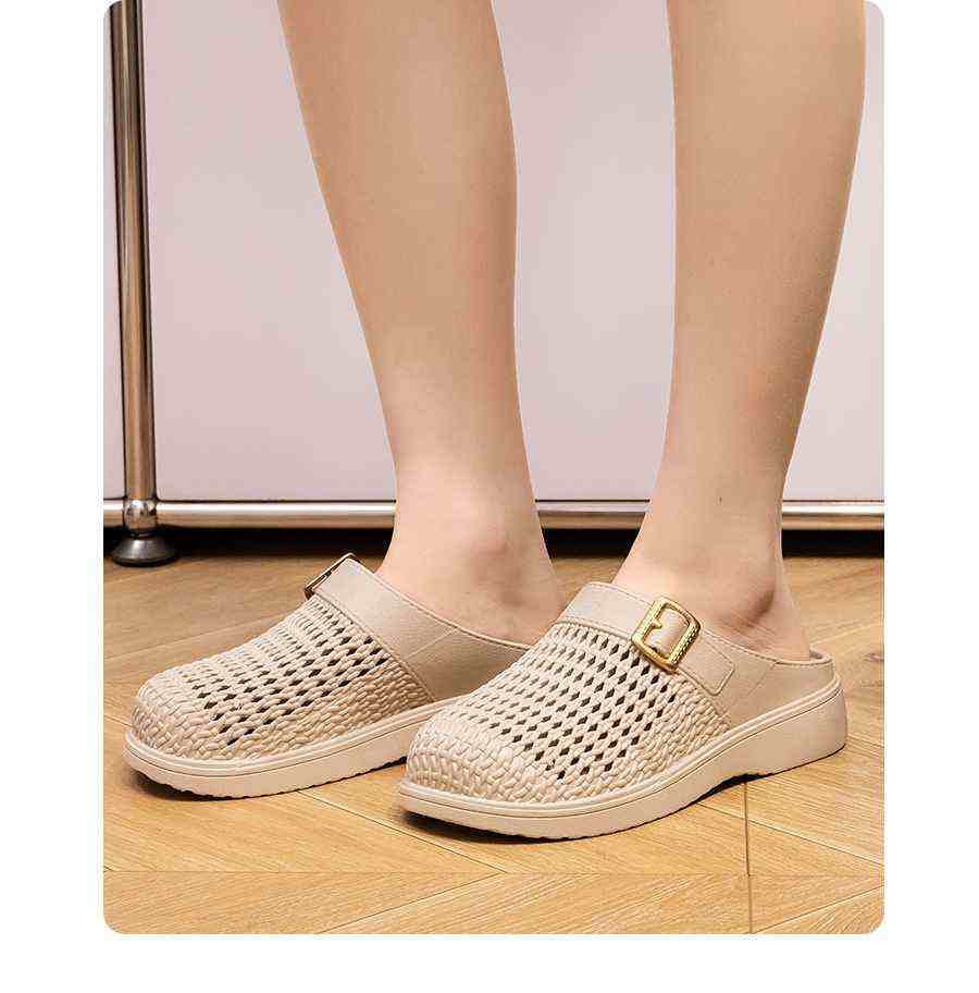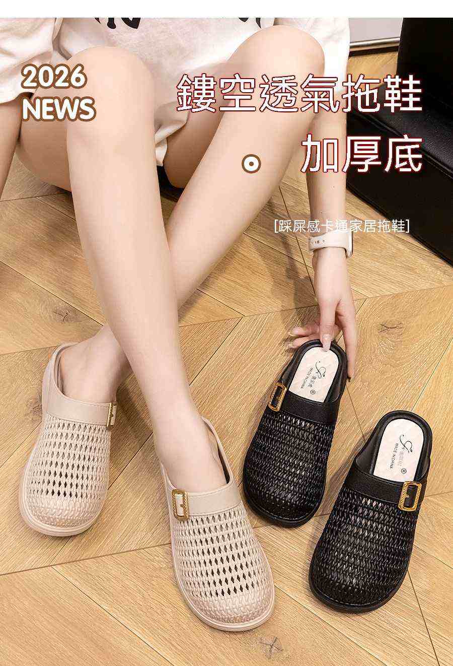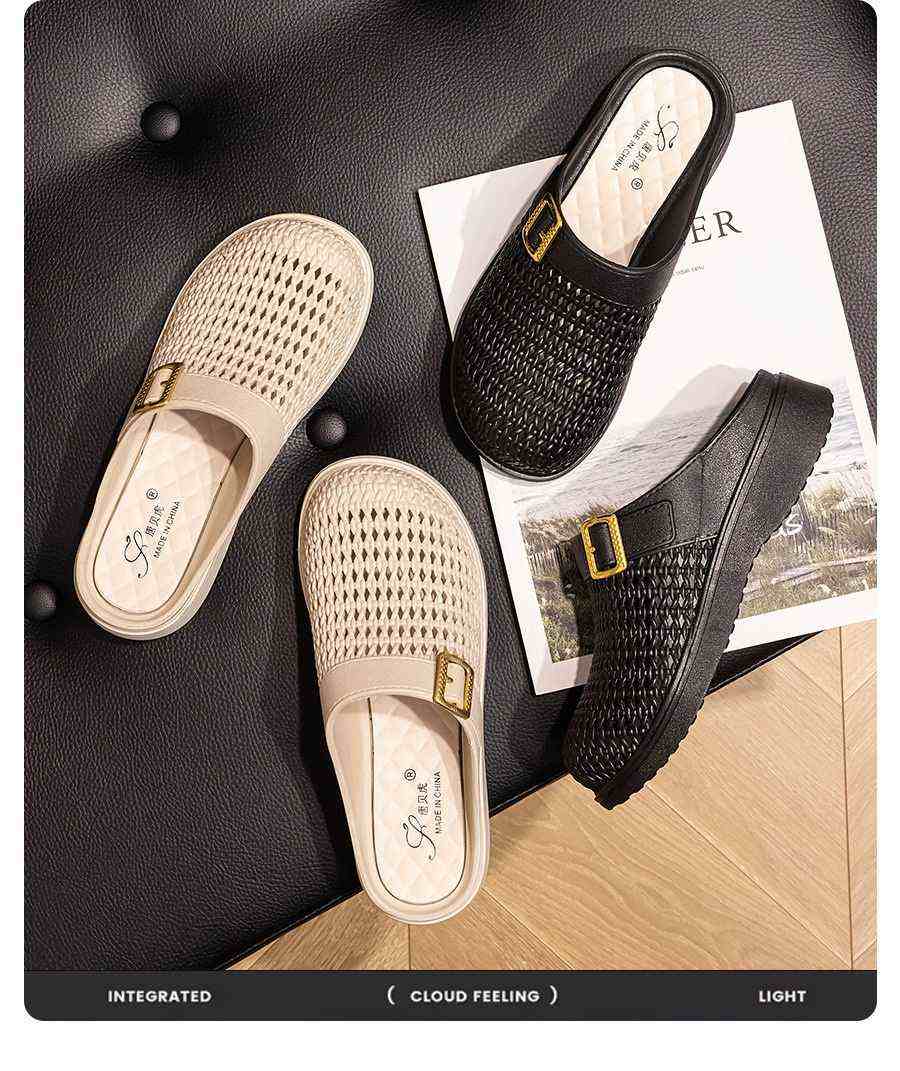 圓頭編織拼接包頭透氣厚底拖鞋【買一送一】【黑色】+【米白色】各一雙(到手兩雙,每雙均價400元!)