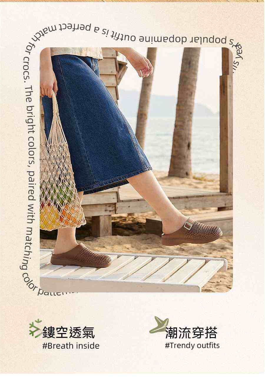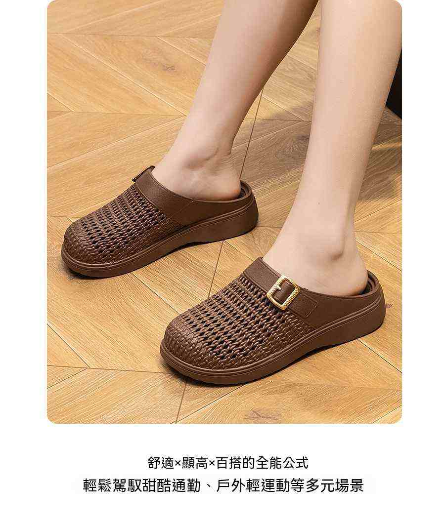 圓頭編織拼接包頭透氣厚底拖鞋【買一送一】【棕色】+【深咖色】各一雙(到手兩雙,每雙均價400元!)