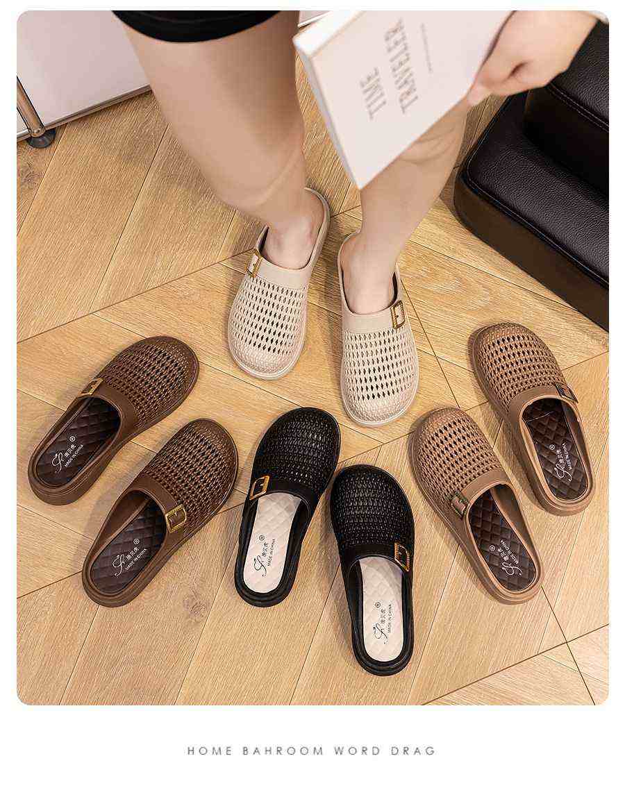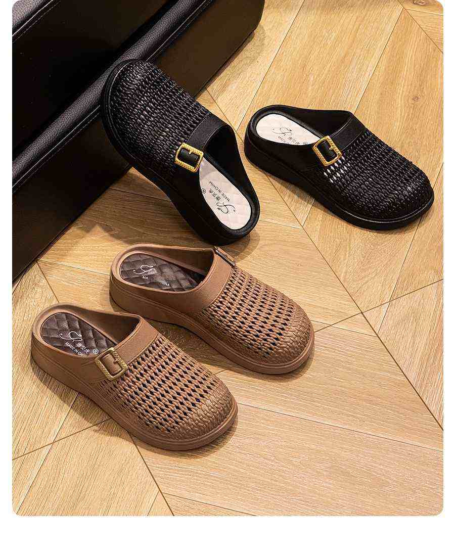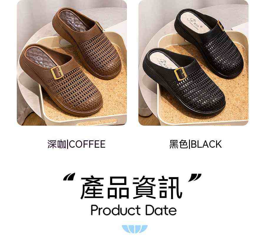 圓頭編織拼接包頭透氣厚底拖鞋【買一送一】【黑色】+【深咖色】各一雙(到手兩雙,每雙均價400元!)