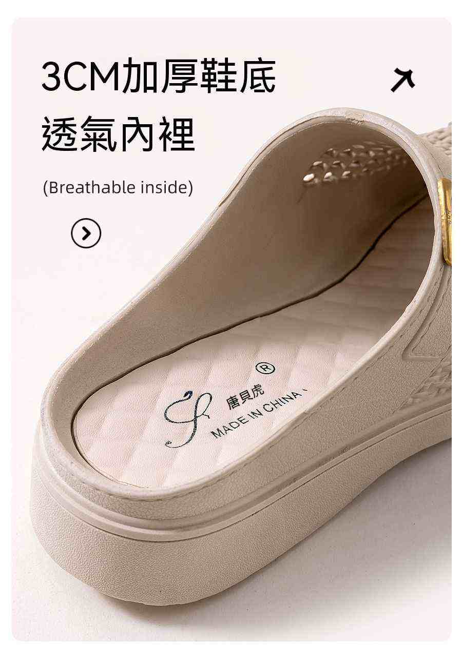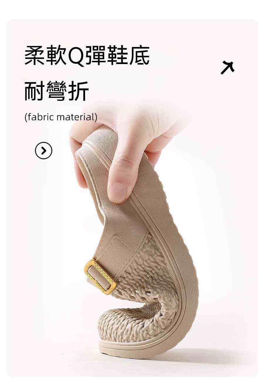 圓頭編織拼接包頭透氣厚底拖鞋【買一送一】【米白色】+【深咖色】各一雙(到手兩雙,每雙均價400元!)