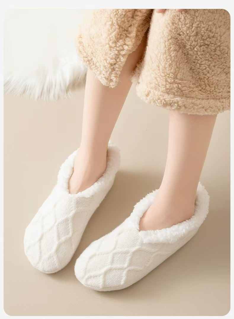 防滑舒適辦公居家加絨保暖襪【奶白色】+【粉色】各一組(到手2組,每組均價399元)