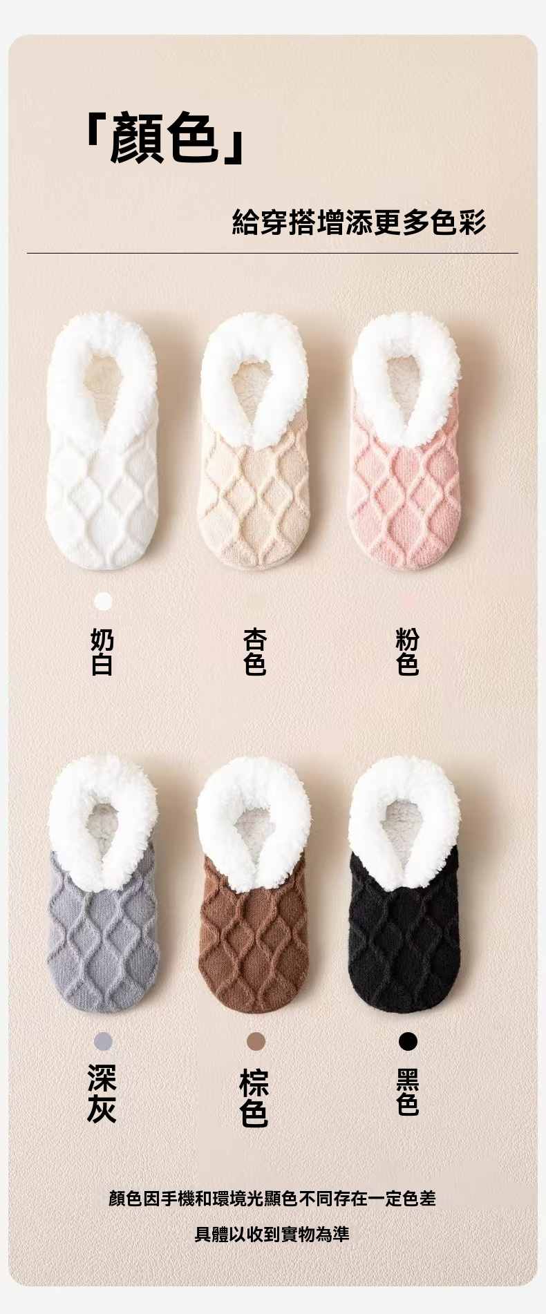 防滑舒適辦公居家加絨保暖襪【奶白色】+【杏色】各一組(到手2組,每組均價399元)
