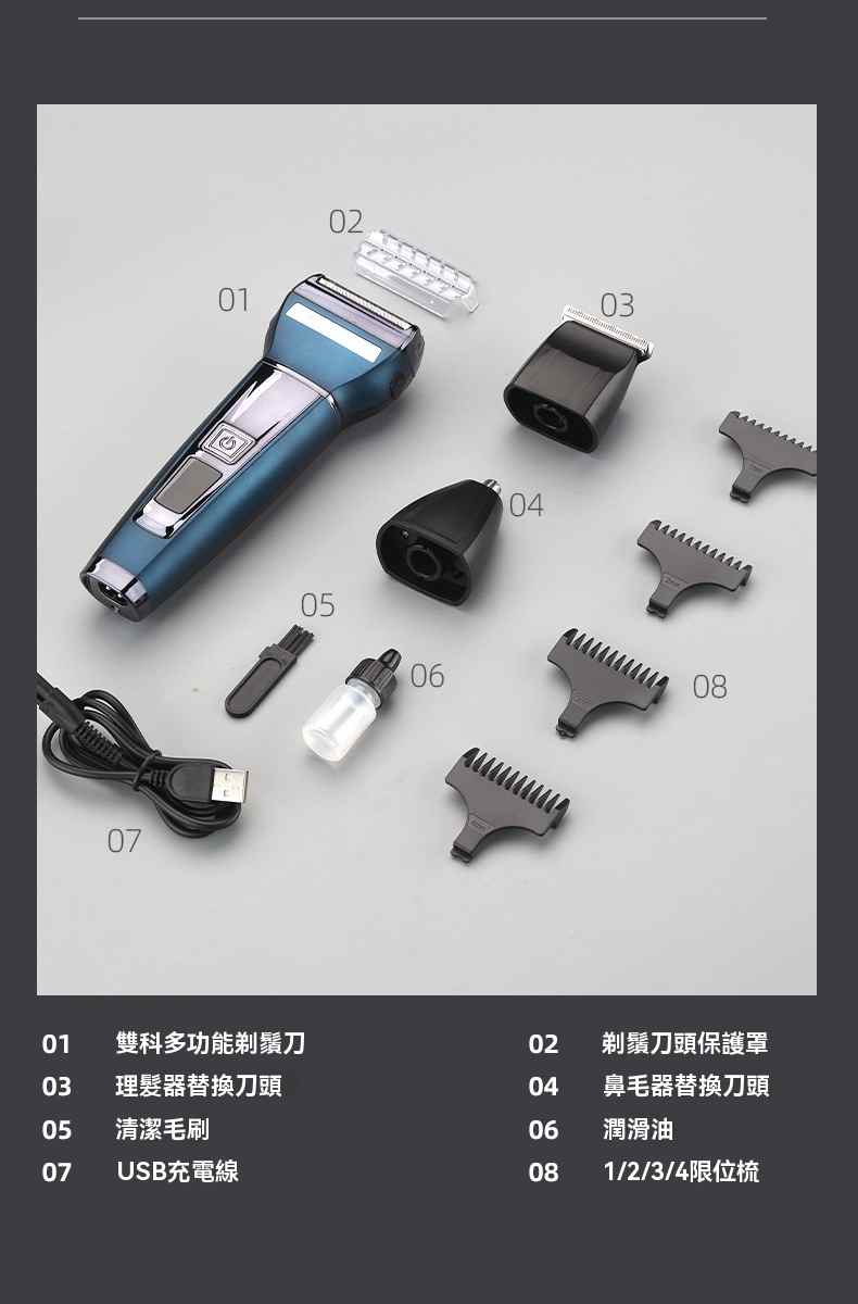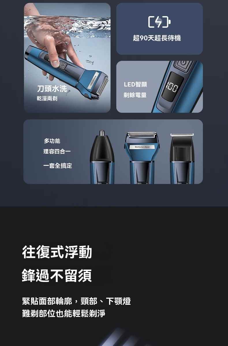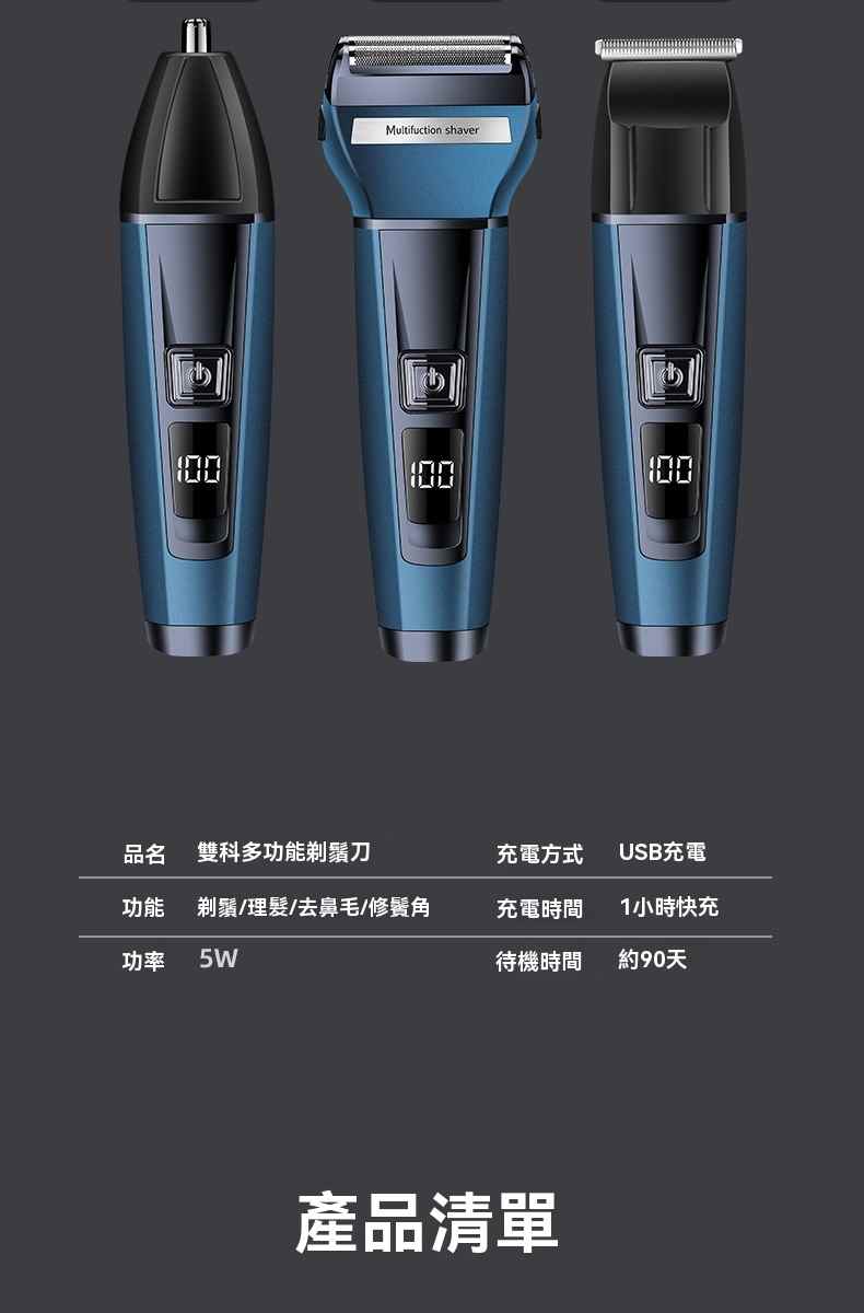 【全身水洗!LED顯示!浮動刀頭!理髮剃鬚去鼻毛一套搞定!】往復式數顯三合一多功能電動剃鬚刀