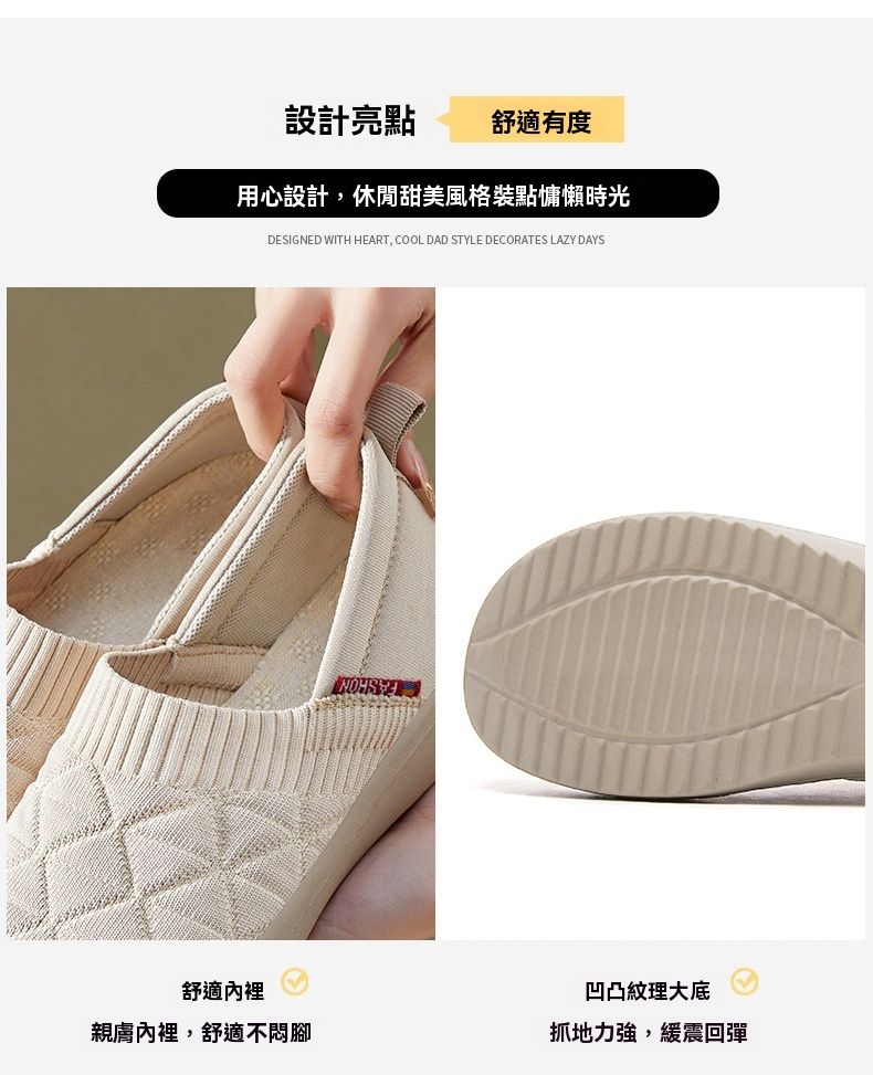 百搭輕便平底軟底一腳蹬飛織鞋【買一送一】【米色】+【黑色】各一雙(到手兩雙,每雙均價549元!)