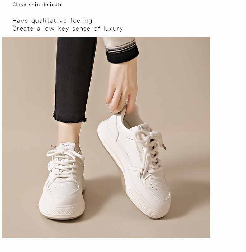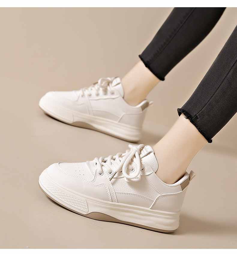 利落簡潔顯高厚底休閒女鞋【買一送一】【米杏色】+【米黑色】各一雙(到手兩雙,每雙均價549元!)