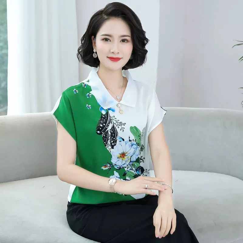 氣質媽媽夏季花瓣印花上衣【買一送一】藍色+綠色各一件(到手2件!每件均價499元!)