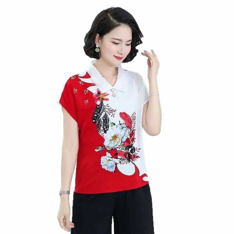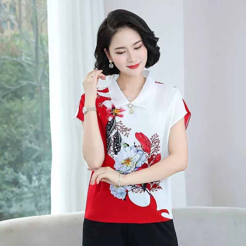 氣質媽媽夏季花瓣印花上衣【買一送一】紅色+綠色各一件(到手2件!每件均價499元!)