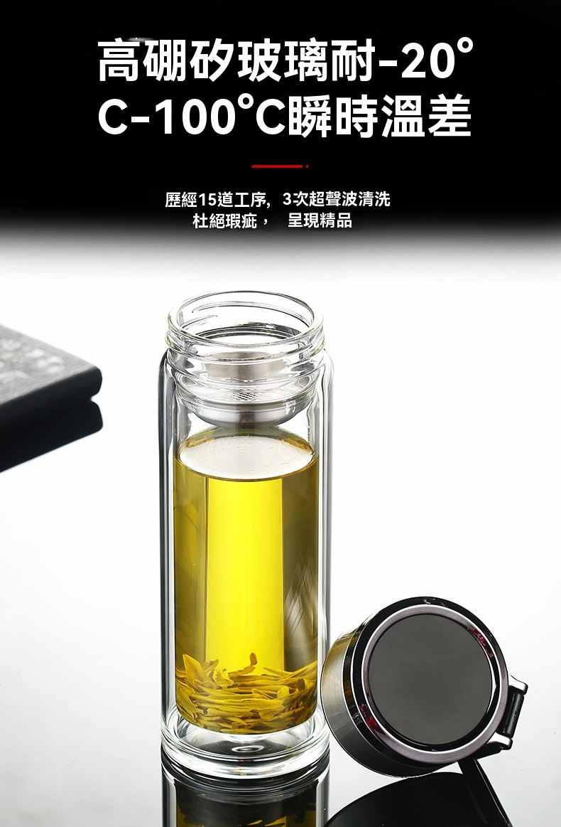 雙層玻璃提環茶水分離杯【買一送一】金色+銀色各一組(到手2組,每組均價399元!)