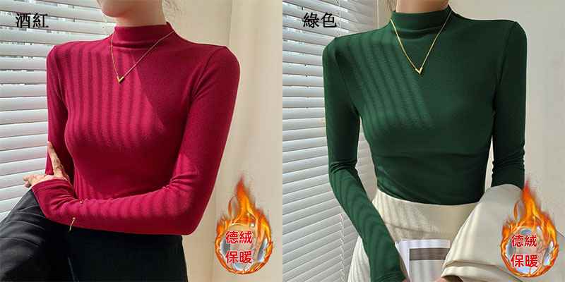 顯瘦百搭保暖純色德絨長袖上衣【買一送二】綠色+酒紅色+粉色各一件(到手三件,每件333元!)