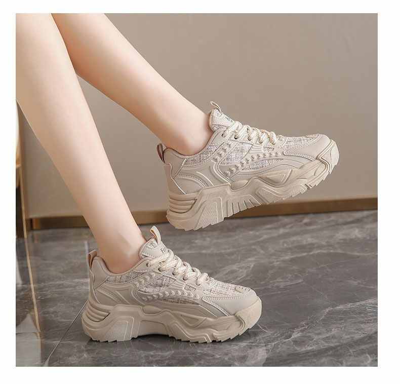 鬆糕鞋跟增高舒適休閒女鞋【買一送一】【卡其色】+【白色】各一雙(到手兩雙,每雙均價549元!)