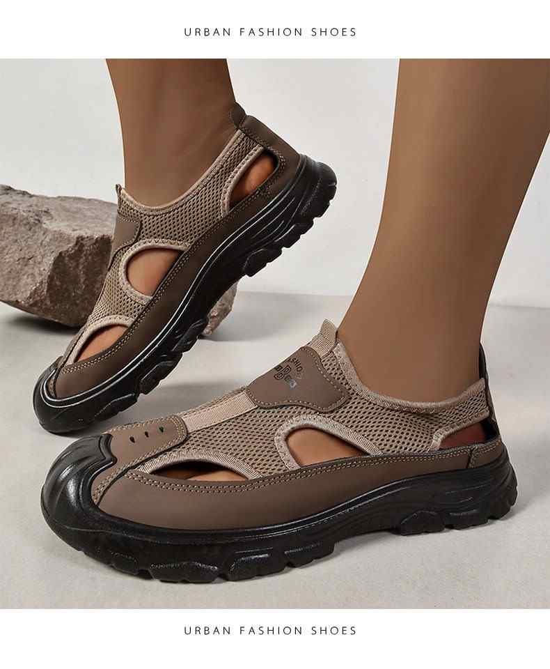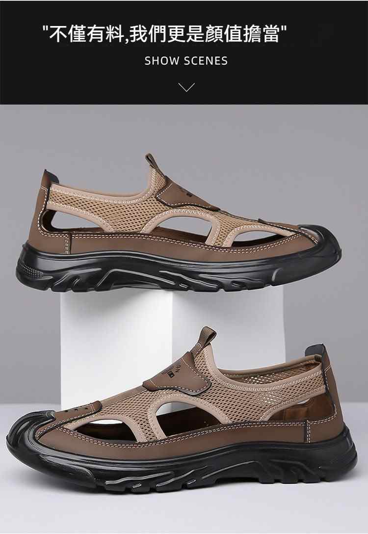 網面鏤空戶外休閒軟底男鞋【買一送一】【黑色】+【咖色】各一雙(到手2雙,每雙均價549元!)