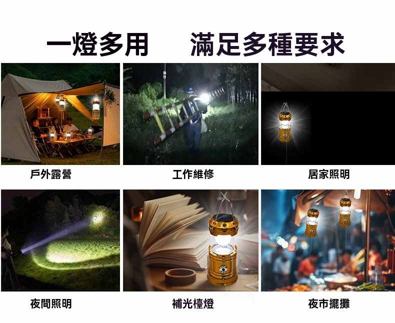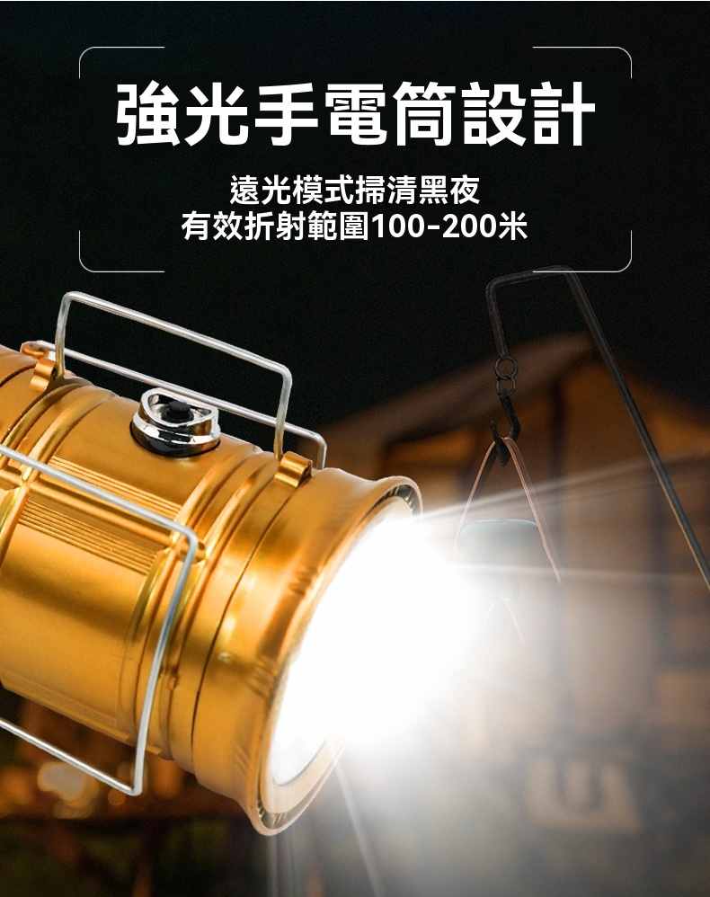 太陽能多功能戶外便攜式露營燈【買一送一】金色+藍色各一組(到手2組,每組均價399元!)