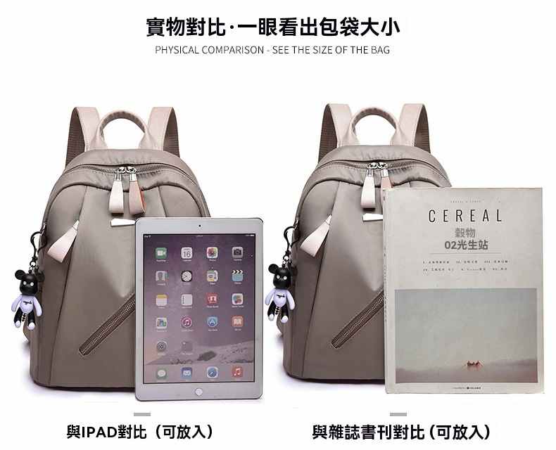 牛津布時尚潮流雙肩女包【卡其色】一組