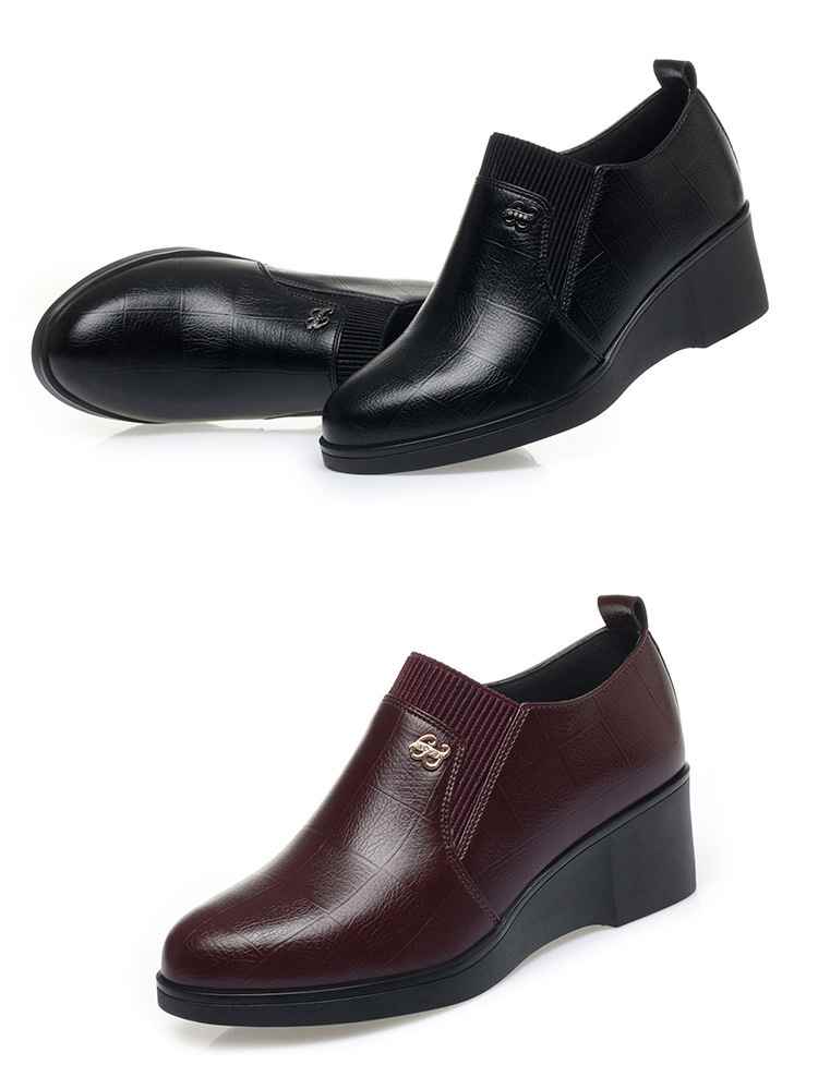 坡跟增高軟皮復古舒適女鞋【買一送一】【黑色】+【酒紅色】各一雙(到手兩雙,每雙均價549元!)