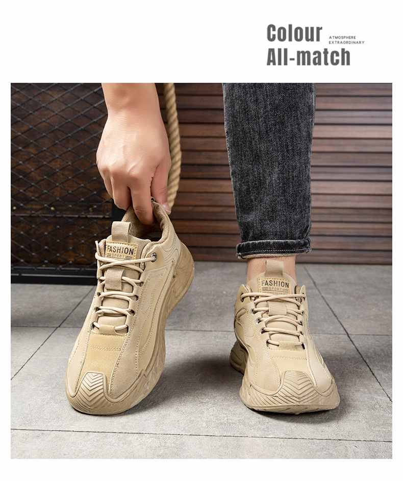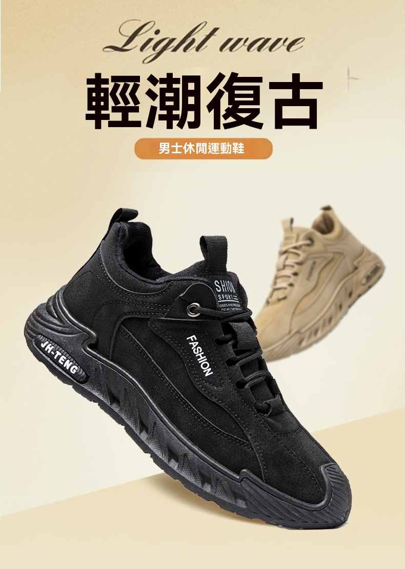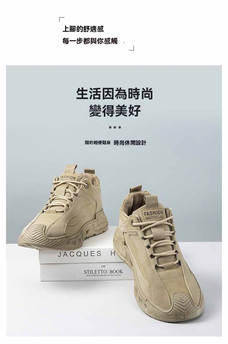 輕潮復古軟彈增高休閒男鞋【咖色】+【灰色】各一雙(到手2雙,每雙均價549元!)