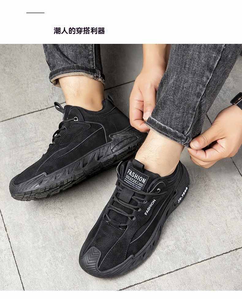 輕潮復古軟彈增高休閒男鞋【黑色】2雙(到手2雙,每雙均價549元!)