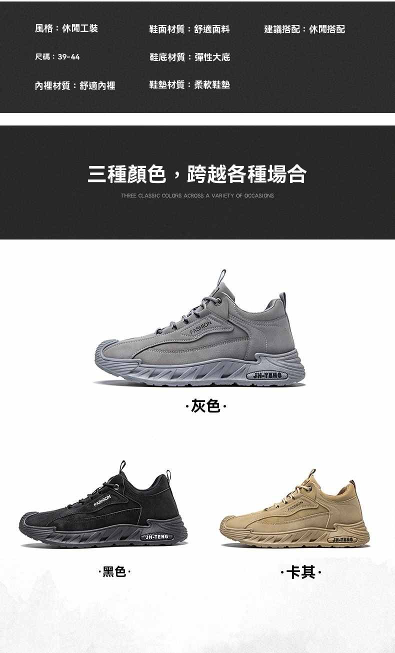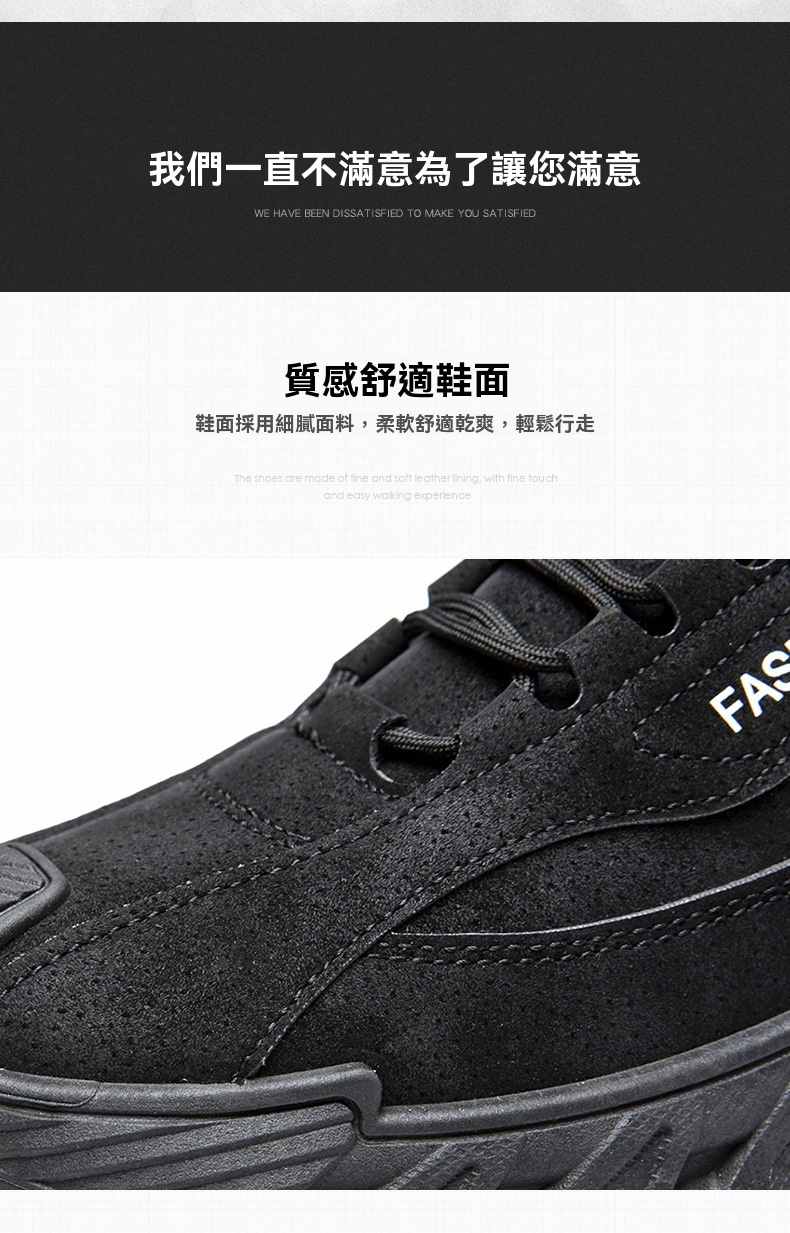 輕潮復古軟彈增高休閒男鞋【灰色】+【黑色】各一雙(到手2雙,每雙均價549元!)