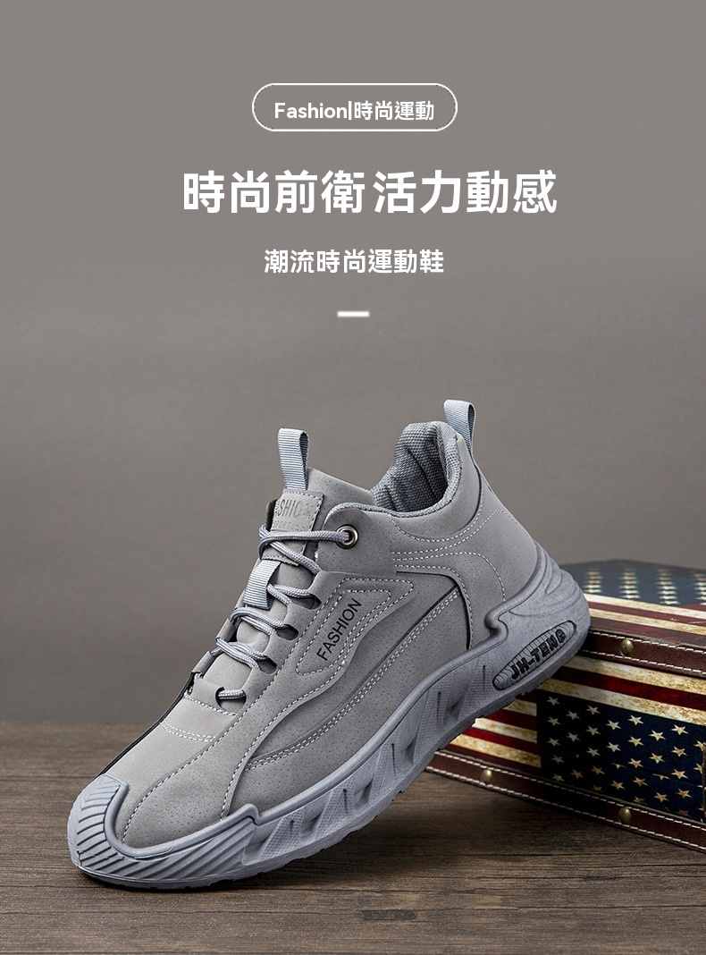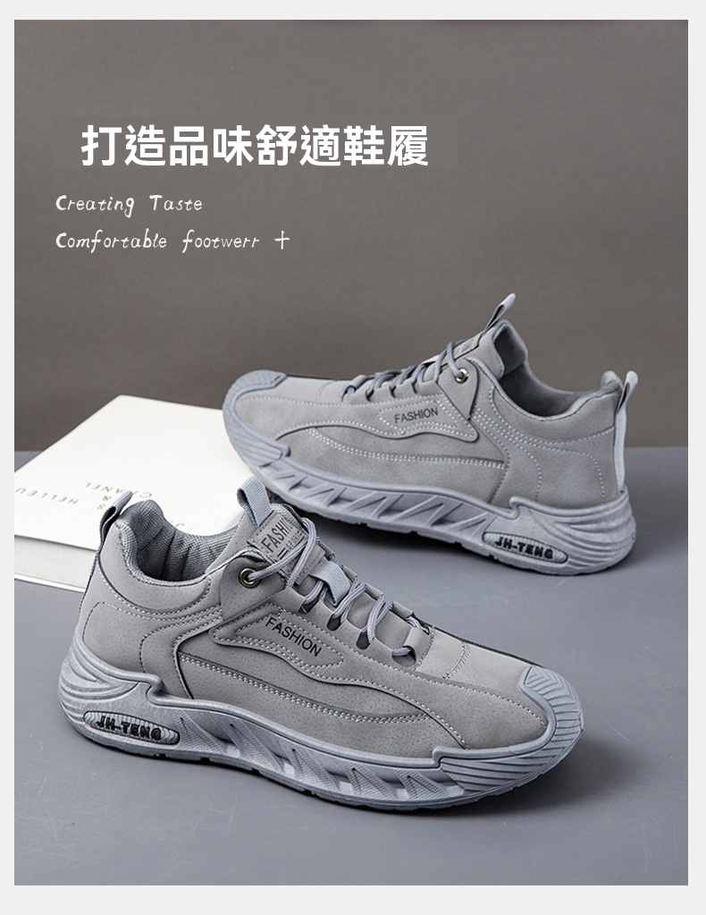 輕潮復古軟彈增高休閒男鞋【灰色】2雙(到手2雙,每雙均價549元!)
