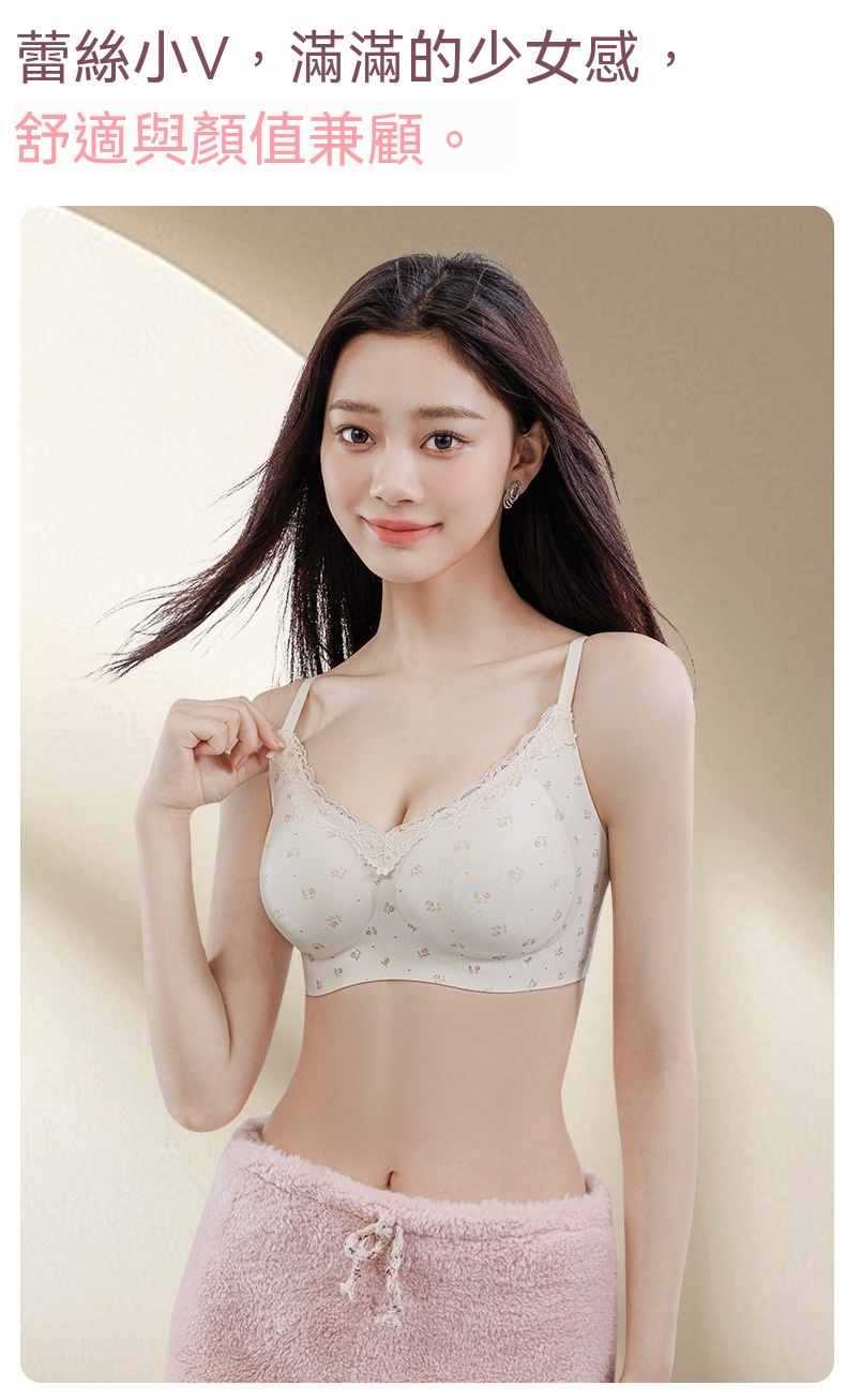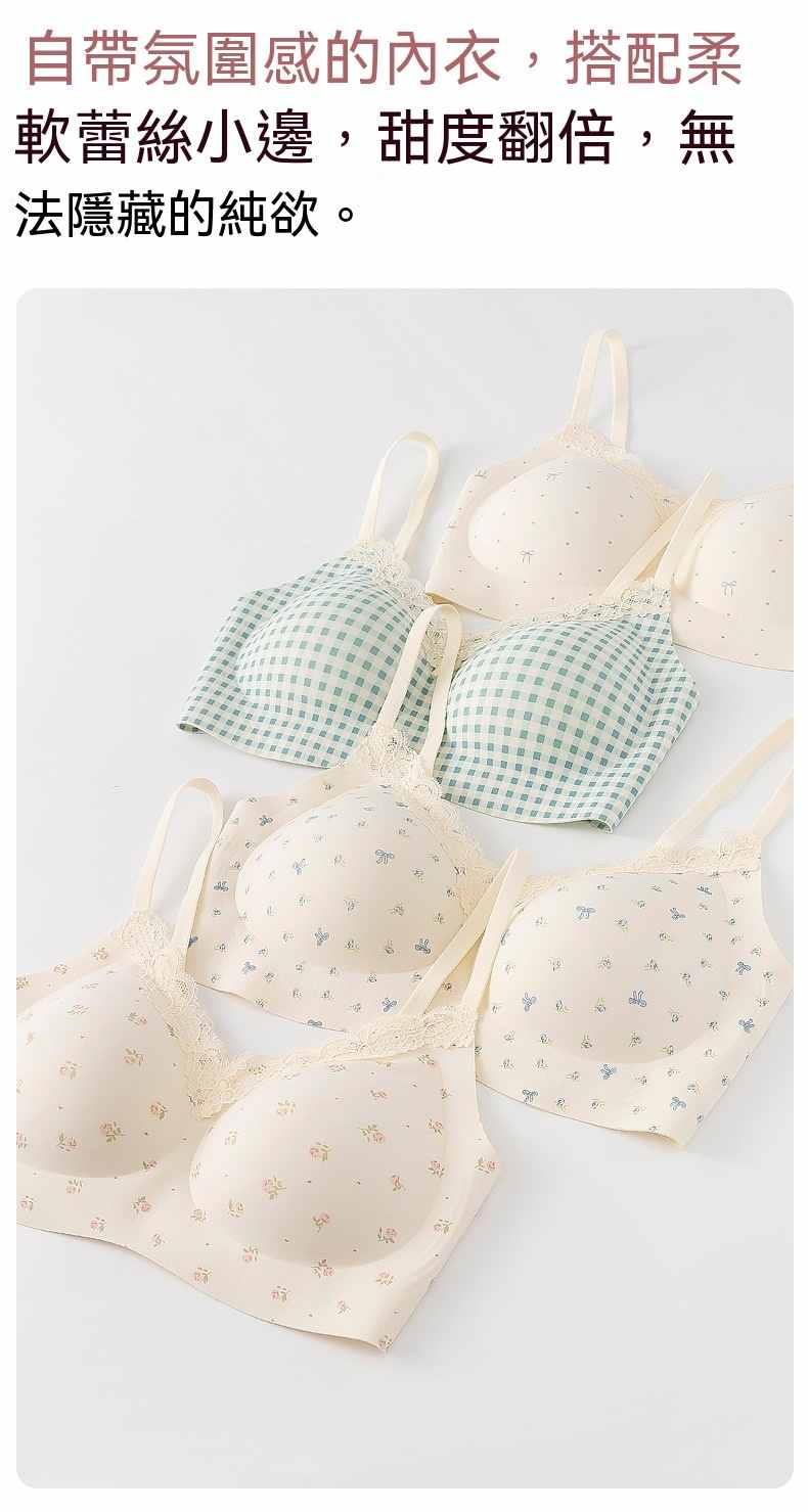 甜美薄款無鋼圈防下垂碎花內衣【買一送二】碎花+藍格+愛心各一件(到手3件,每件均價333元!)