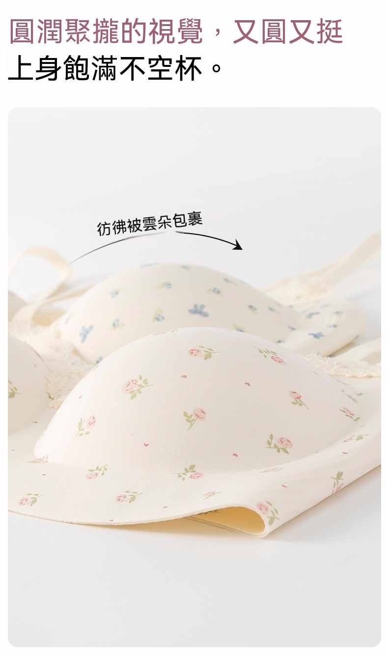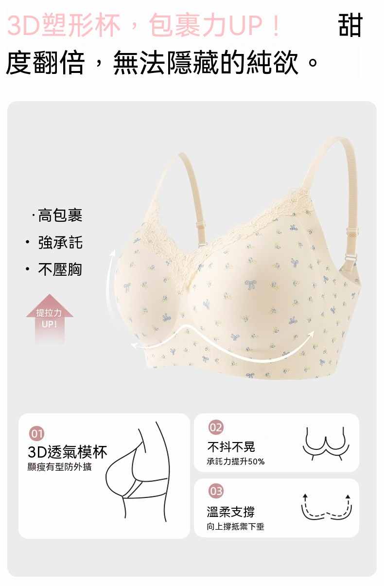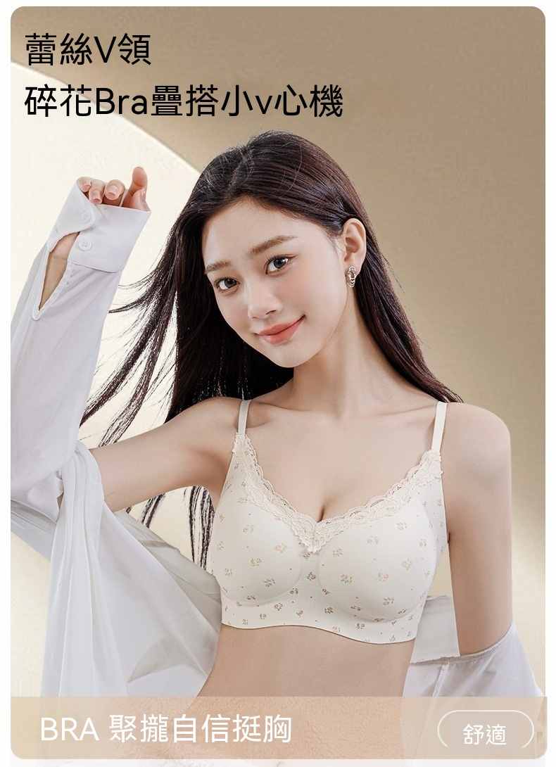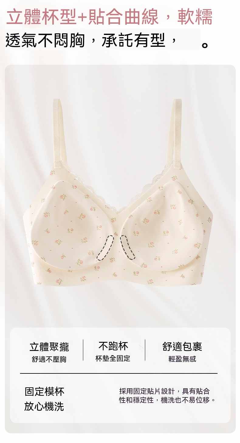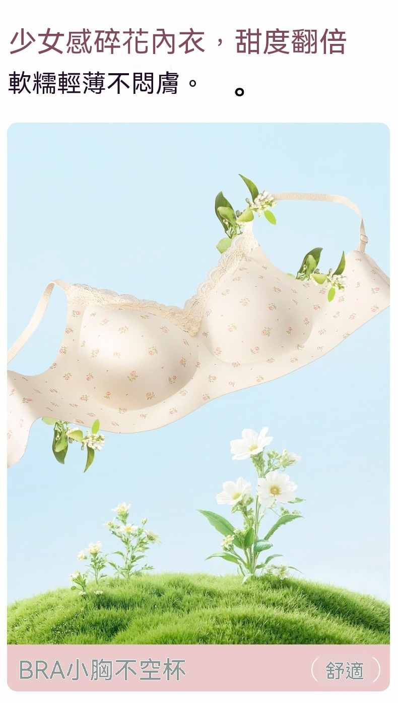 甜美薄款無鋼圈防下垂碎花內衣【買一送二】碎花+藍花+愛心各一件(到手3件,每件均價333元!)