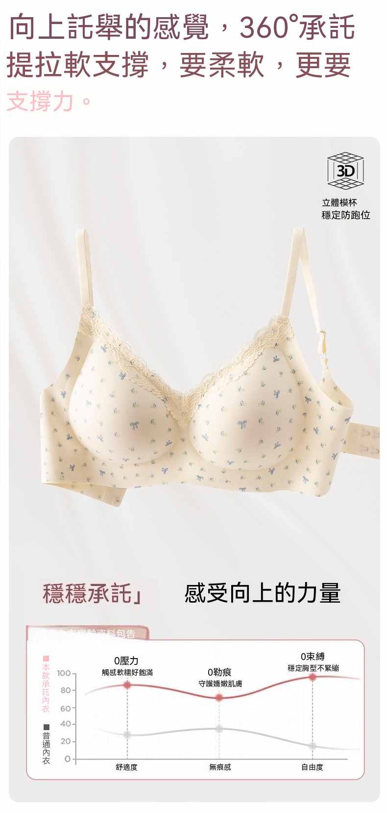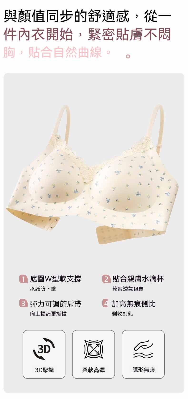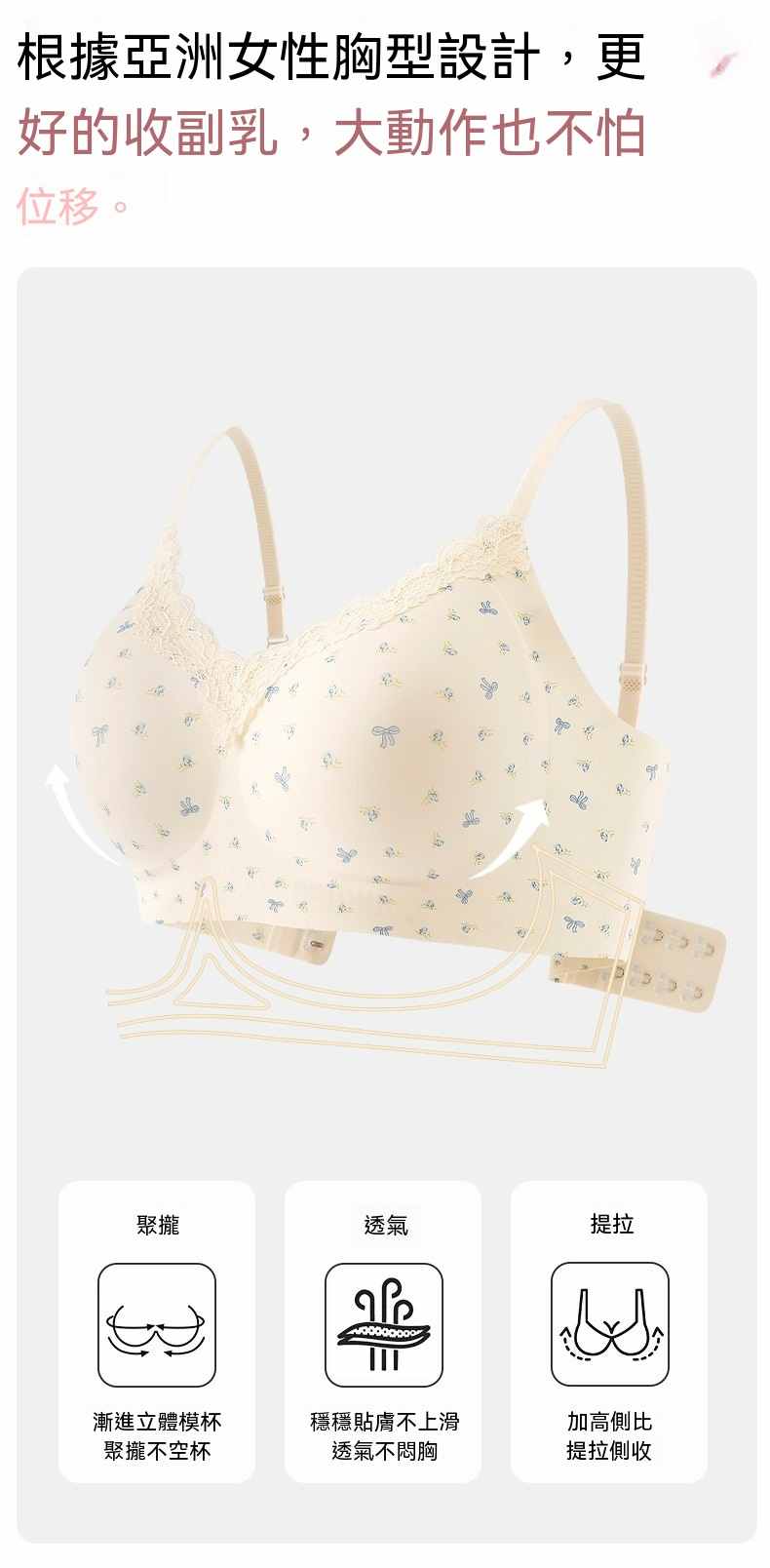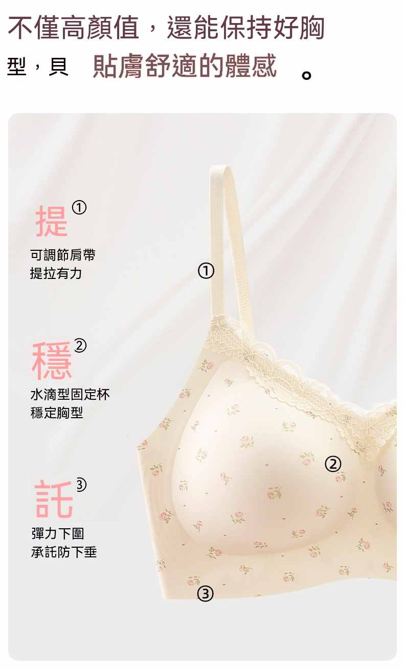 甜美薄款無鋼圈防下垂碎花內衣【買一送二】碎花+藍花+愛心各一件(到手3件,每件均價333元!)