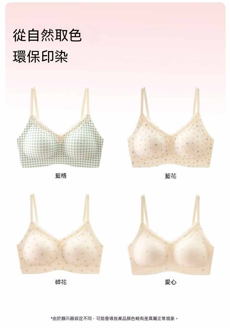 甜美薄款無鋼圈防下垂碎花內衣【買一送二】藍花+藍格+愛心各一件(到手3件,每件均價333元!)