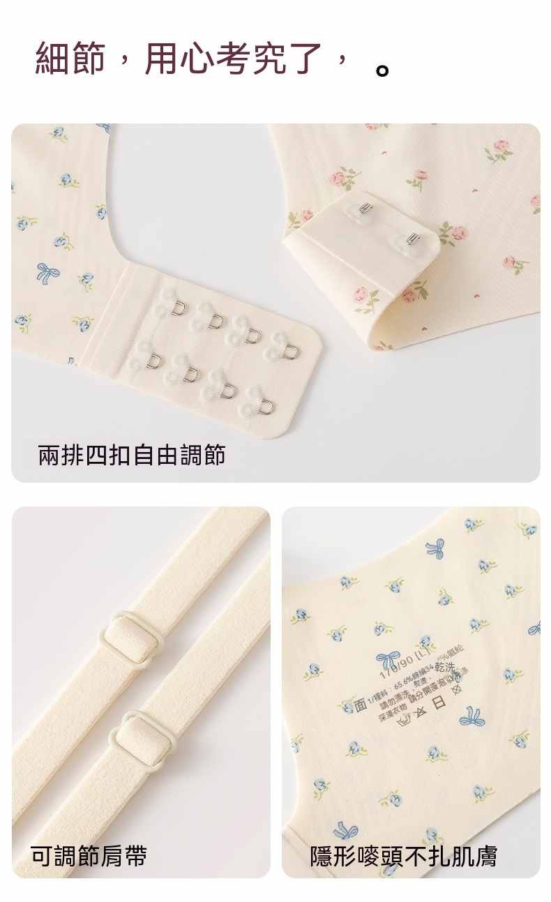 甜美薄款無鋼圈防下垂碎花內衣【買一送二】碎花+藍花+藍格各一件(到手3件,每件均價333元!)
