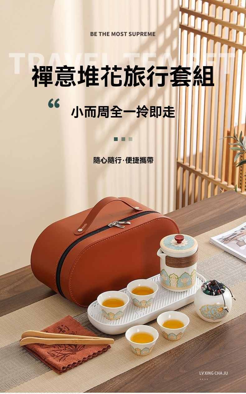 陶瓷套裝【雅黑】一壺四杯+罐巾夾+橢圓包+盤一組