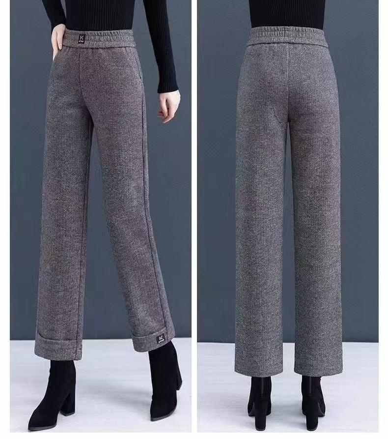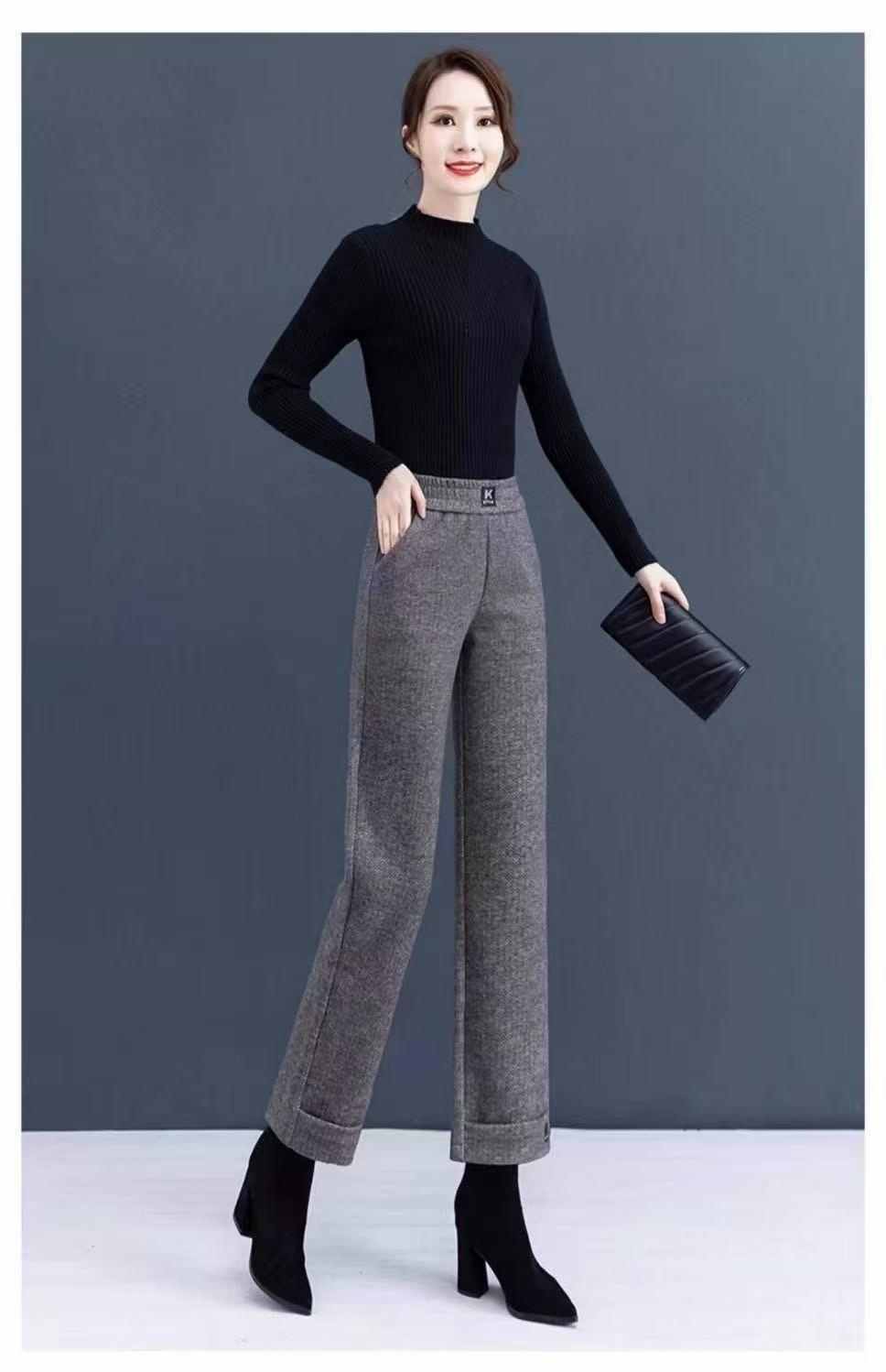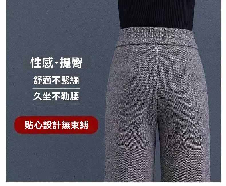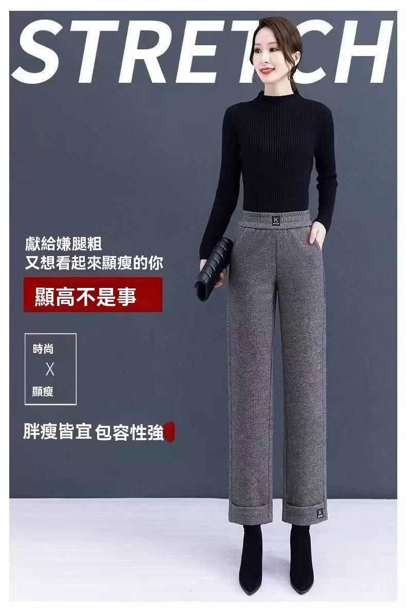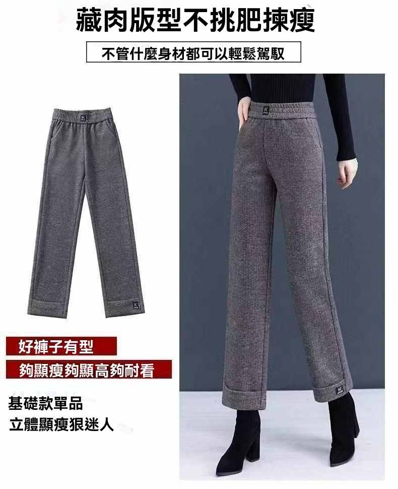 收腰收腹顯瘦顯高呢子媽媽闊腿褲【買一送一】黑灰色+淺灰色各一條(到手2條,每條均價549元!)