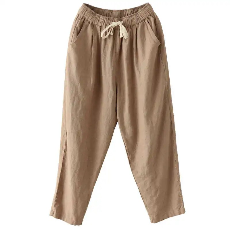 【全台免運!限時特惠買一送一!】棉麻復古寬鬆純色百搭休閒九分褲