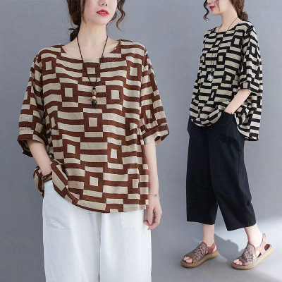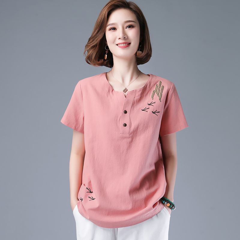 【超低價熱賣!限時買一送一!】棉麻復古風短袖女士T恤