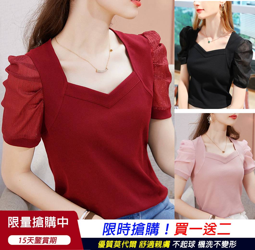 【早鳥優惠!限時特惠買一送二!】舒適親膚泡泡袖短袖