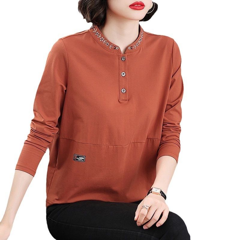 【穿上氣質超群!限時特惠買一送一!】圓領繡花時尚洋氣媽媽T恤