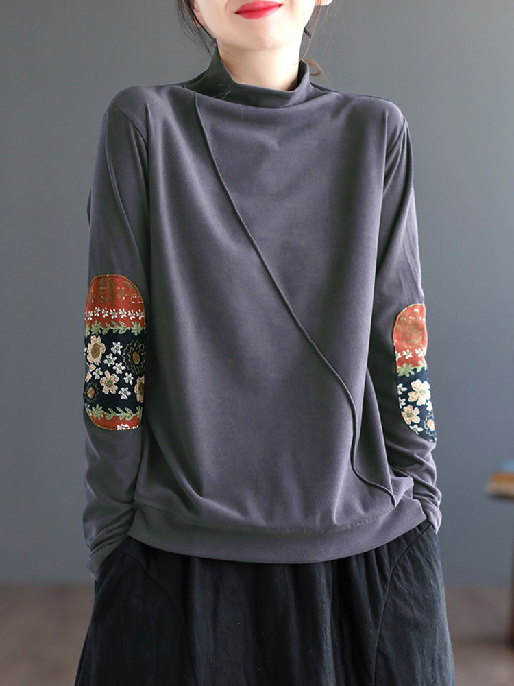 【修身保暖!限時買一送一!】德絨刺繡民族風半高領長袖