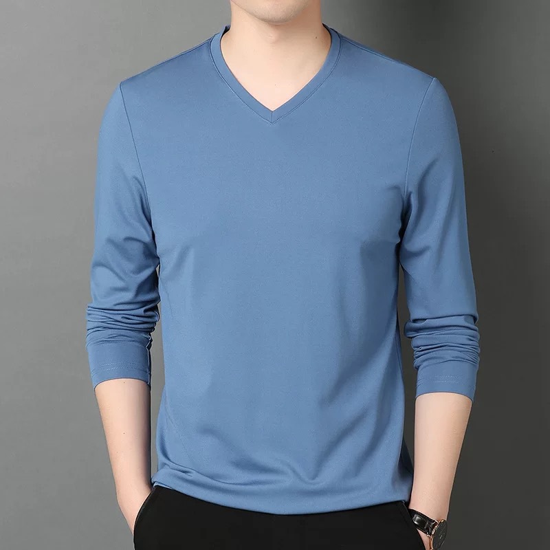 【秋季新款!限時買一送二!】透氣男士打底V領長袖T恤