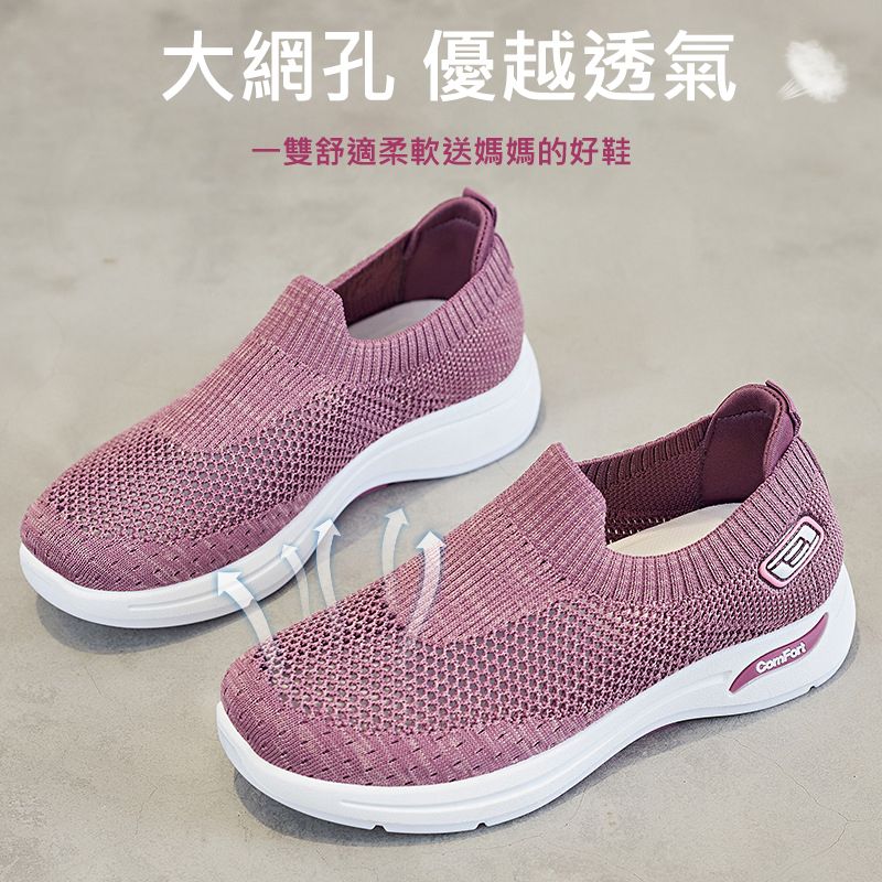 【0差評!特惠買一送一!】清新透氣飛織媽媽鞋