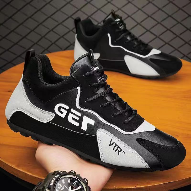 【透氣百搭】春季韓版復古潮流皮面防滑男士跑鞋